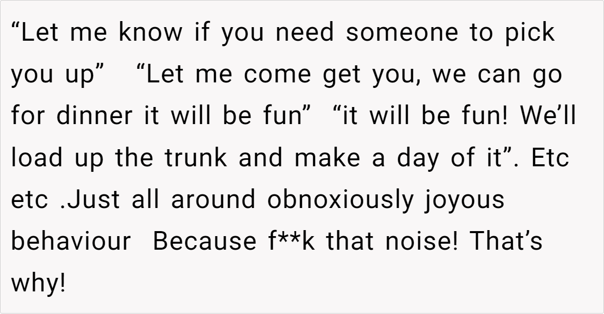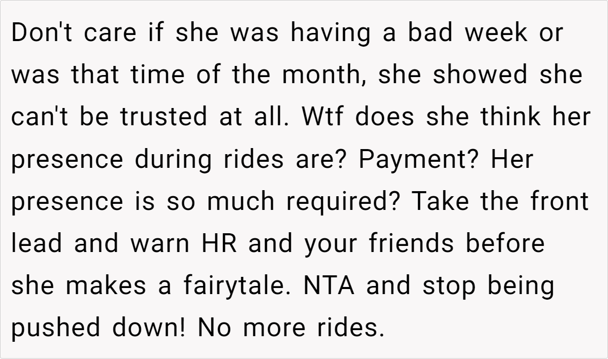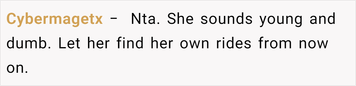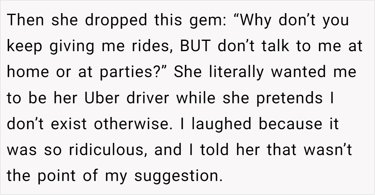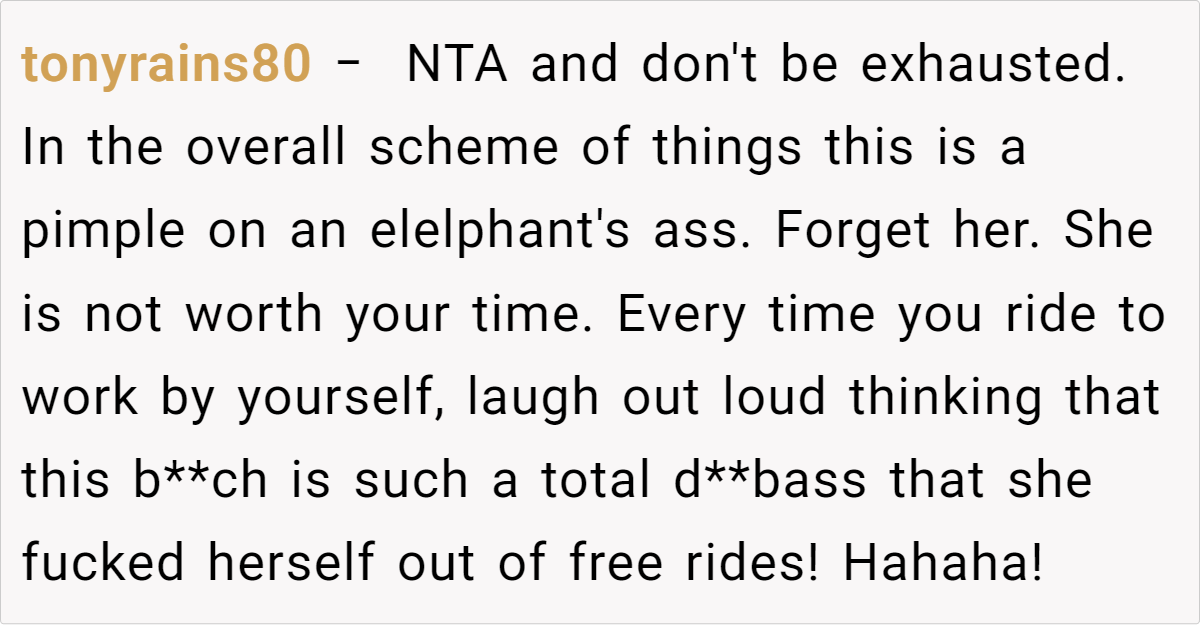 Ultimately, our narrator’s decision to stop giving rides is a stand for self-respect and healthy boundaries. While it might sting to see someone you once considered a friend now become a source of frustration, sometimes it’s necessary to prioritize your own happiness. In the end, friendship should never be a one-sided transaction, and every individual deserves to feel valued on their own terms. What do you think? Have you ever had to set similar boundaries with someone who took your generosity for granted? Share your thoughts and experiences in the comments below.