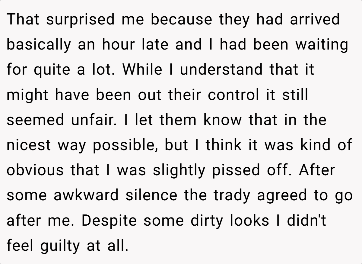 Ultimately, this experience wasn’t about petty impatience; it was about expecting basic fairness and clear communication in a stressful environment. While emergencies can disrupt schedules, it’s crucial for service providers to respect the time of those who follow the rules.