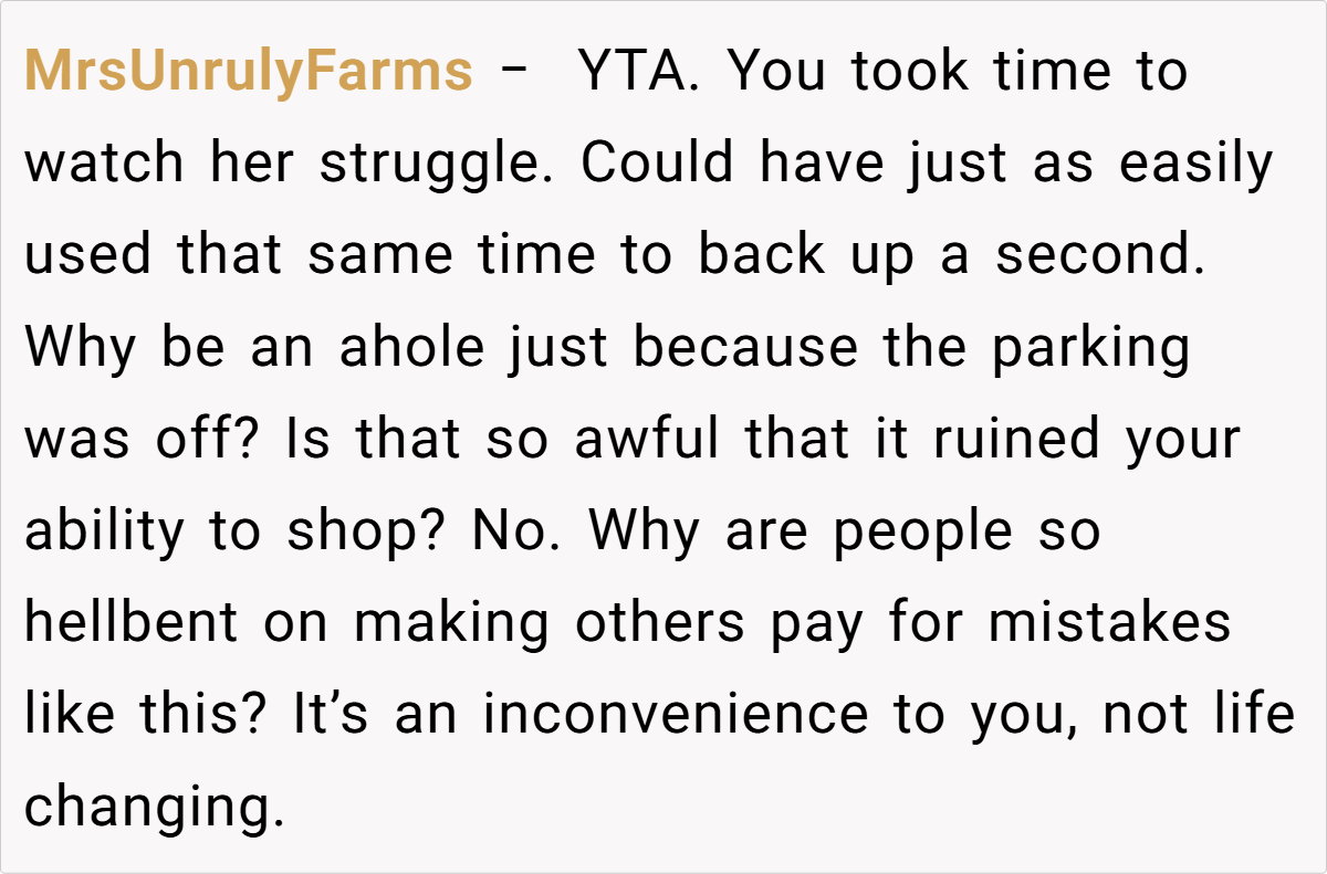 Was the user right to stand his ground and not move his car, or should he have been more considerate and helped the woman? How would you handle a similar parking lot dilemma? Share your thoughts below!