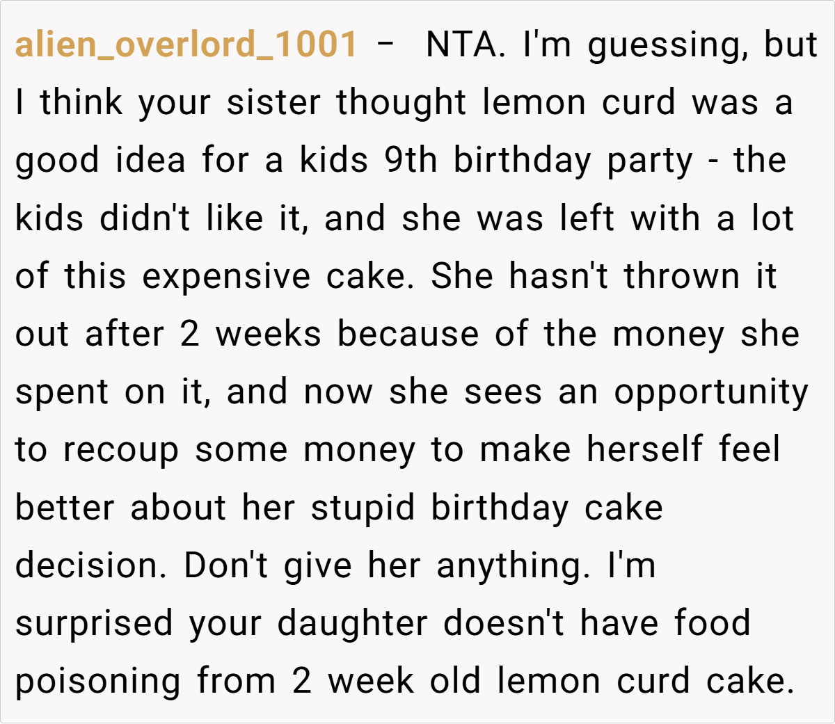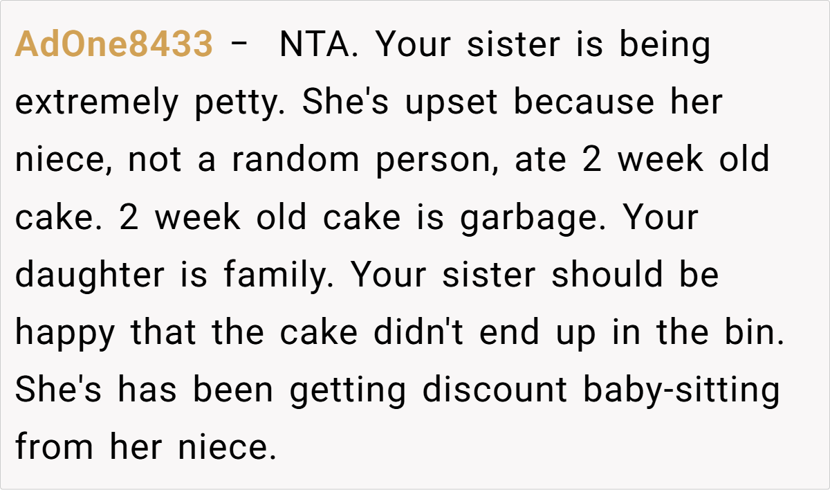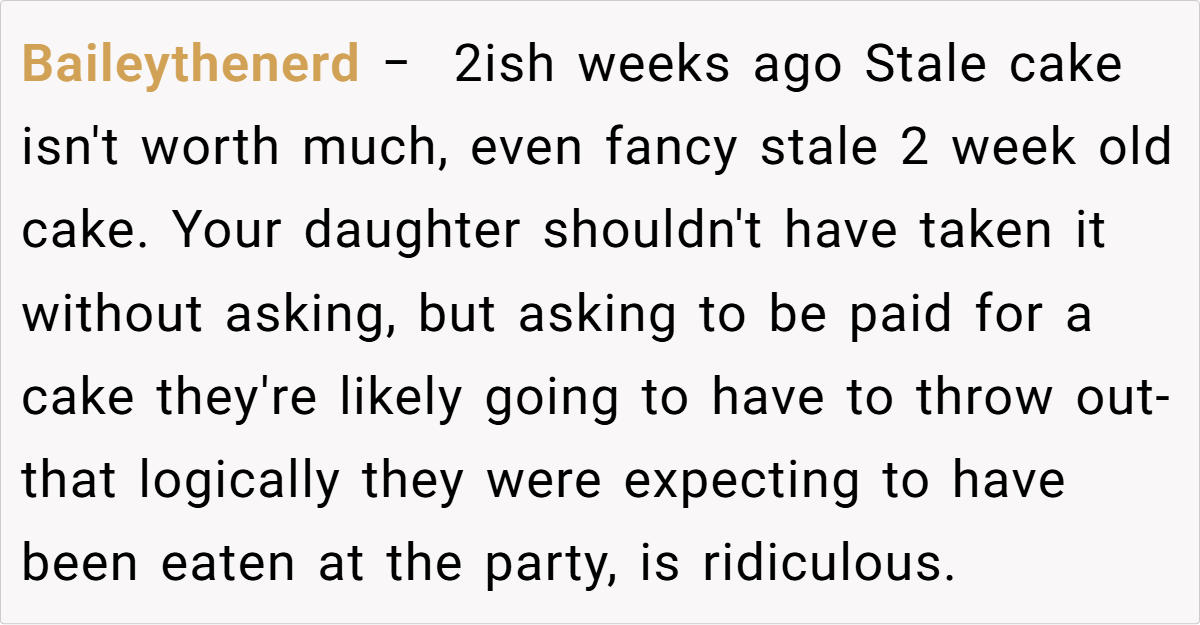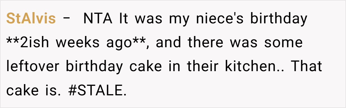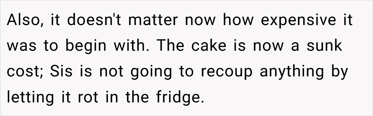 The Reddit community has offered a range of perspectives on this cake controversy. Many users sympathized with the single mom’s stance, arguing that if family members consistently help themselves without permission, consequences are inevitable. They noted that expecting payment for expensive, custom-made cake slices is reasonable, especially when it disrupts plans for a birthday celebration.
