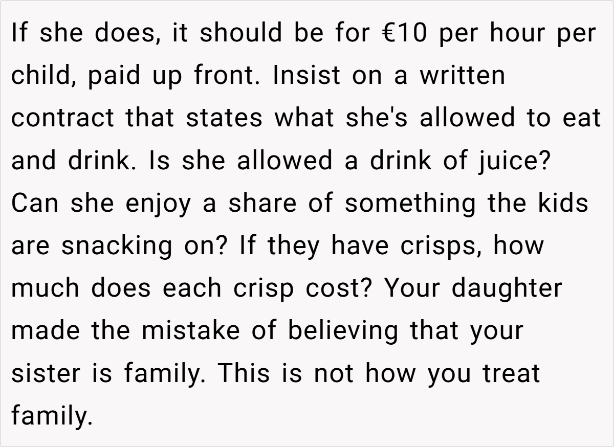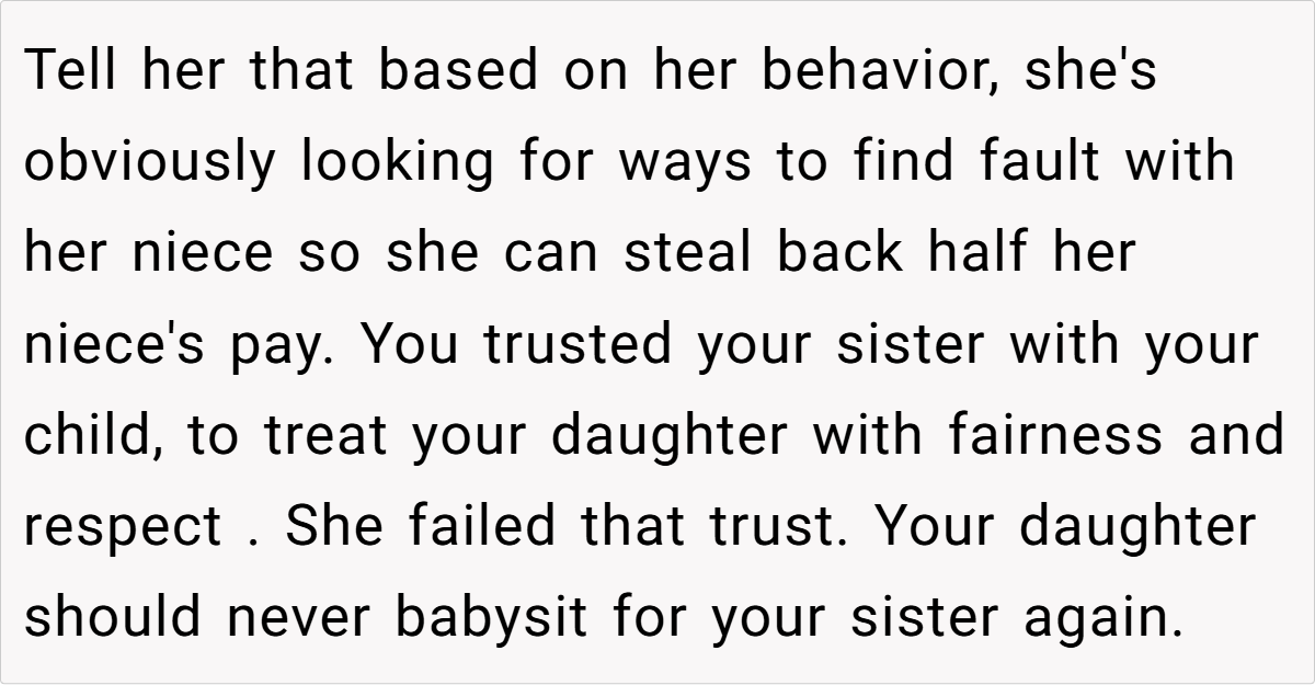 Conversely, some commenters felt that the incident was a minor lapse in judgment and that a small reimbursement might have been a kind gesture to smooth over family tensions. The overall sentiment reflects a mix of practical advice and emotional understanding, with many urging families to communicate expectations more clearly.