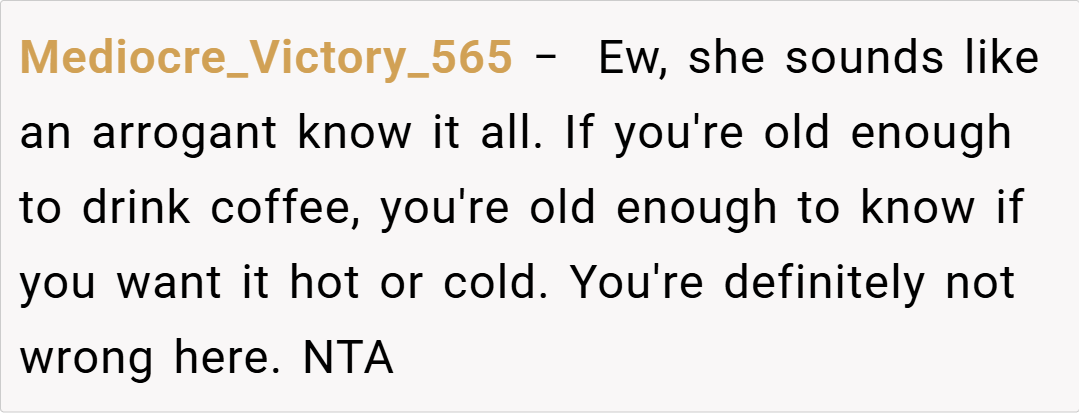 Dr. Susan Krauss Whitbourne, a psychology prof quoted in Psychology Today, nails it: “Respecting preferences is a cornerstone of healthy relationships—ignoring them signals control, not care.” SIL’s move reeks of “I know best,” a subtle power trip the Redditor’s clocked before. Research backs this vibe— a 2021 study from the Journal of Social Psychology found 73% of people feel dismissed when their explicit requests are overridden. No wonder this iced coffee’s left a bitter taste.