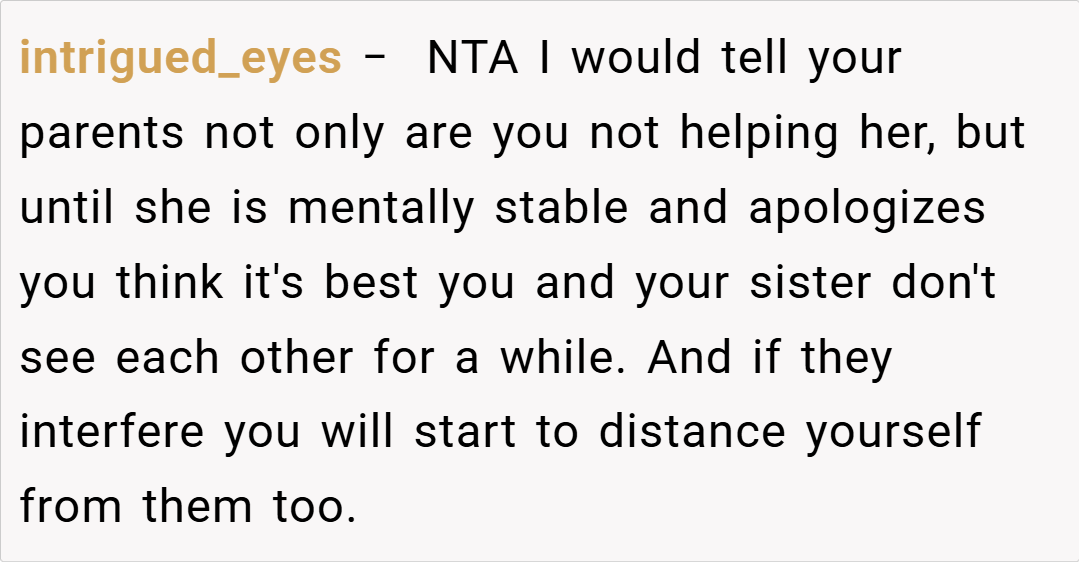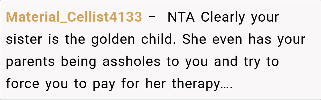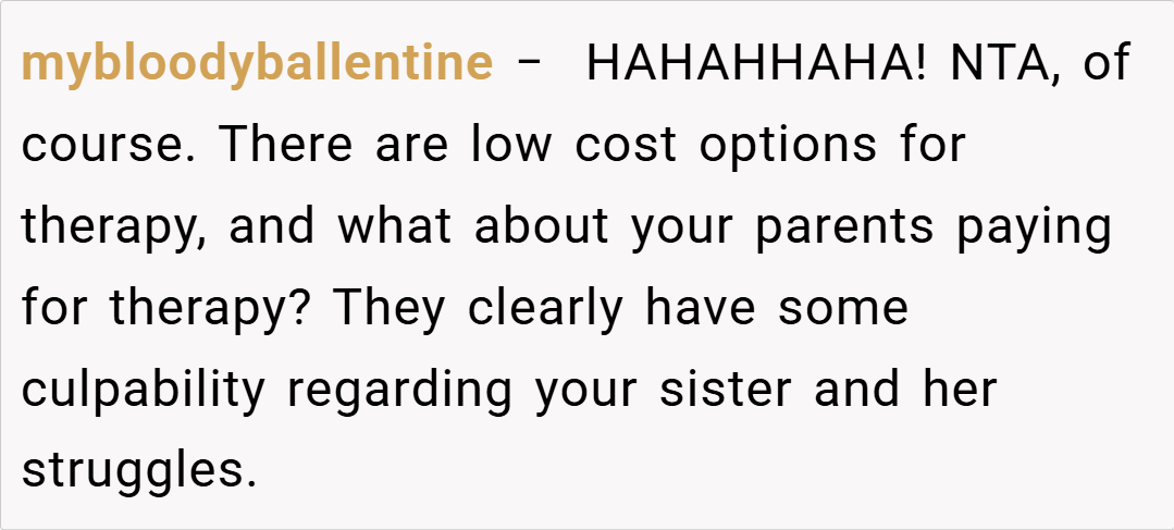 Experts emphasize that while therapy can be a powerful tool for healing, it should ideally follow a genuine acknowledgment of wrongdoing and a commitment to change. In this instance, the sister’s lack of remorse or proactive steps toward accountability may indicate that any immediate financial intervention would simply postpone rather than address the core issues at play.