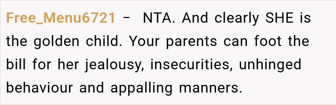 Reddit’s take on this matter is as diverse as it is passionate. Some community members applaud the narrator for standing her ground, arguing that she shouldn’t be forced to subsidize someone’s behavior that ruined one of the most important days of her life. “If someone ruins your big day, the least they can do is take responsibility for it,” one user remarked, encapsulating the sentiment of many.