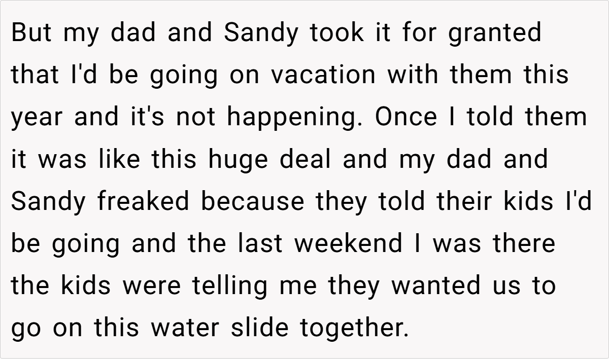 AITA for refusing to tell my dad’s other kids I won’t be going on vacation with them?