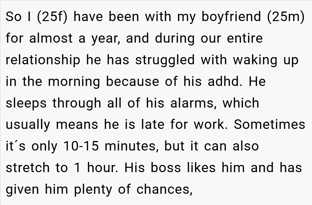 Mornings in any relationship can be a bit rough, especially when one partner struggles to rise and shine. For one 25‑year‑old woman, her boyfriend’s chronic difficulty waking up—thanks to his ADHD—has turned routine mornings into battlegrounds.