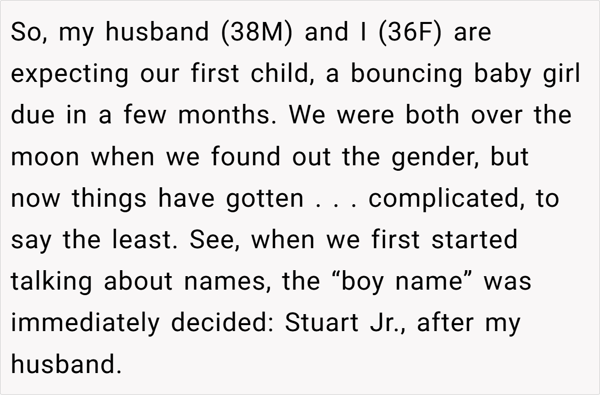 Expecting a child is one of life’s most exciting moments, yet even the sweetest journey can be marred by a seemingly trivial decision—like picking a name. When my husband (38M) and I (36F) learned we were having a baby girl, we celebrated the news with equal parts joy and discussion about names.