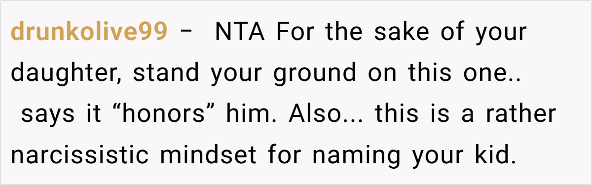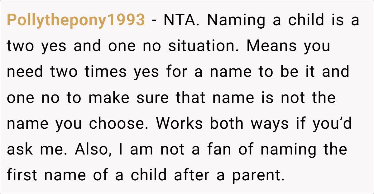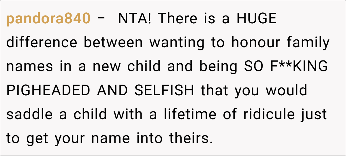 Many redditors empathized with my concerns, with one commenter noting, “Names are a gift, not a curse—don’t saddle your child with something that sounds like a discount brand!” Others agreed that while honoring family is important, it should never come at the cost of a child’s comfort or identity.