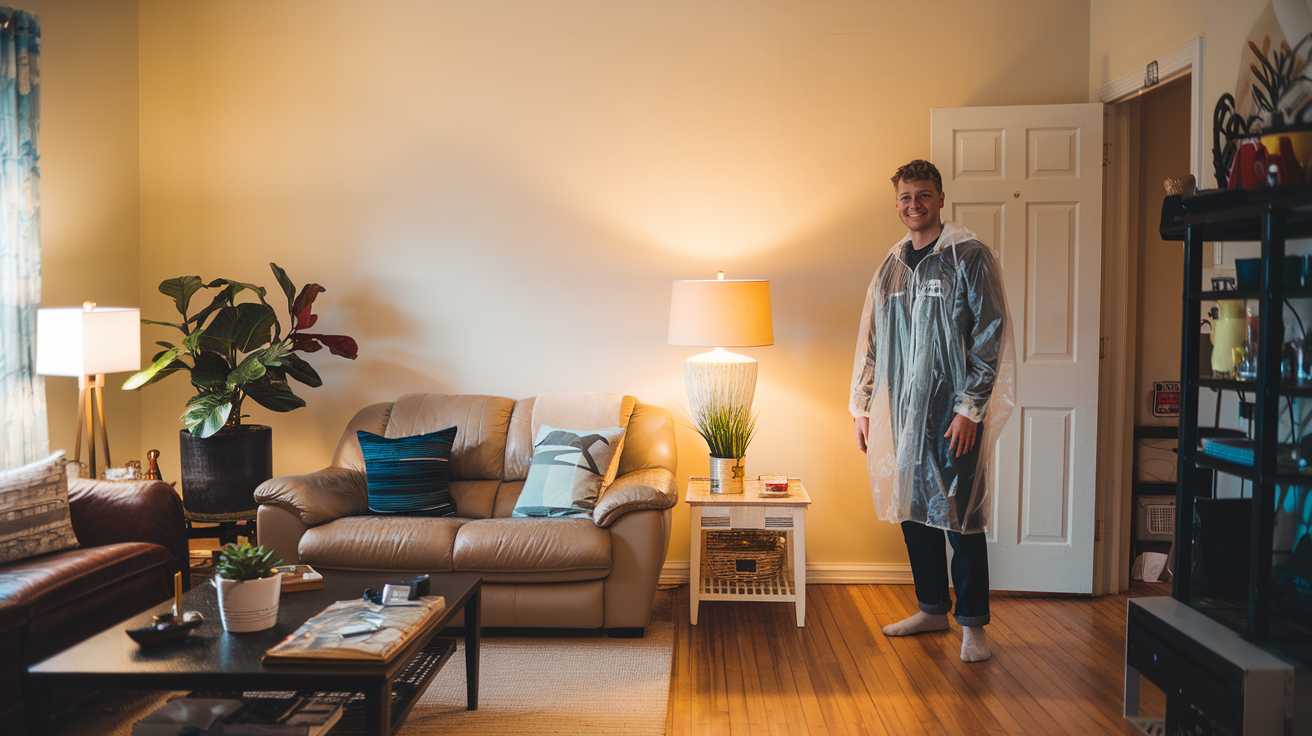 A 20-year-old man lives alone and maintains a strict hygiene rule: guests must either change into clean clothes or wear a disposable raincoat before sitting on his furniture. He believes it limits the germs brought in from outside.