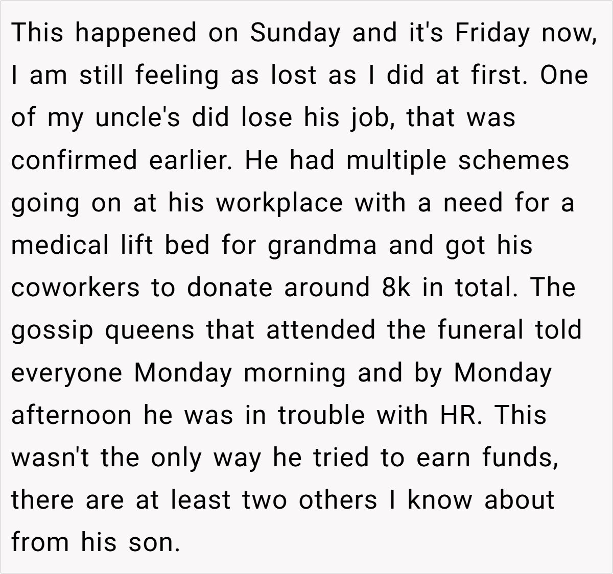 Furthermore, the incident highlights the complex interplay between personal loss and collective family accountability. When family members exploit tragedy for their own benefit, the grief of those who truly cared becomes entangled with the need for justice