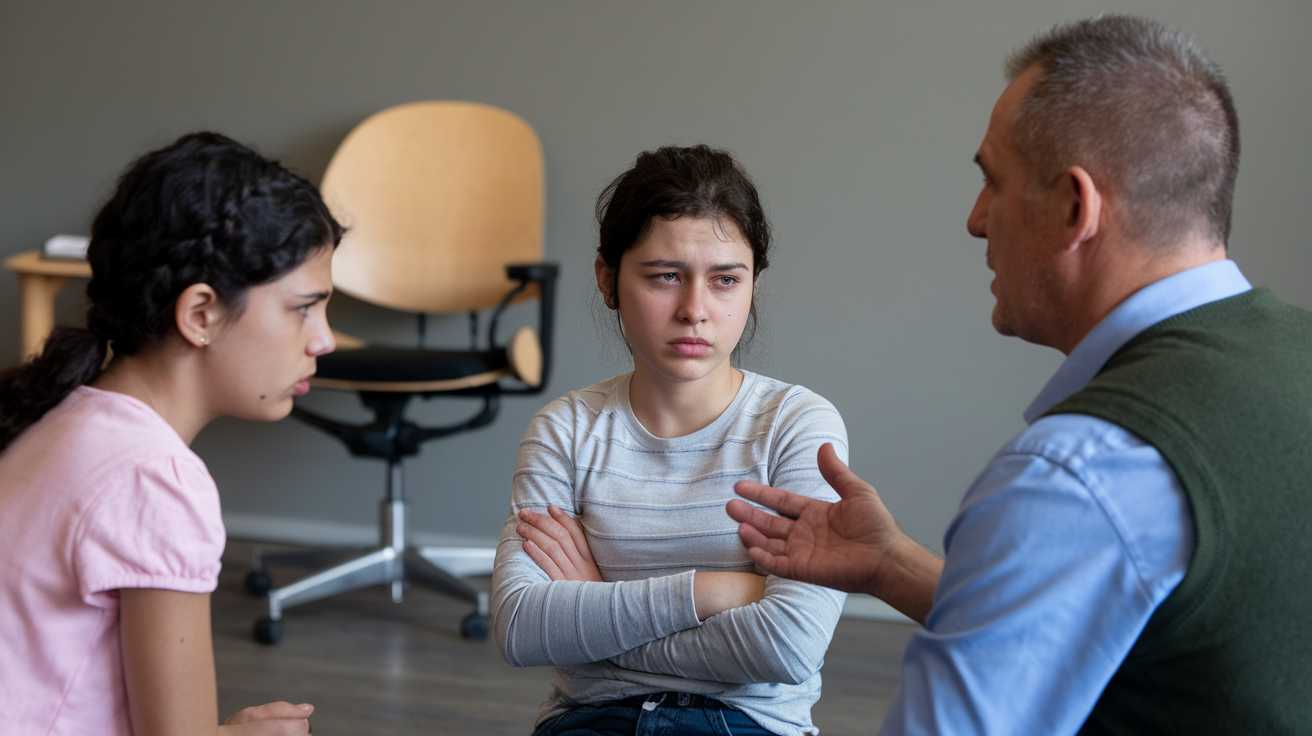 My dad, stepmother, half sister (13) and I (16) are in family therapy. My dad was concerned about mine and my half sister’s strained relationship and my distant relationship with his wife and he wanted us to finally come together as a family. My parents broke up when mom was pregnant with me and divorced after I was born.