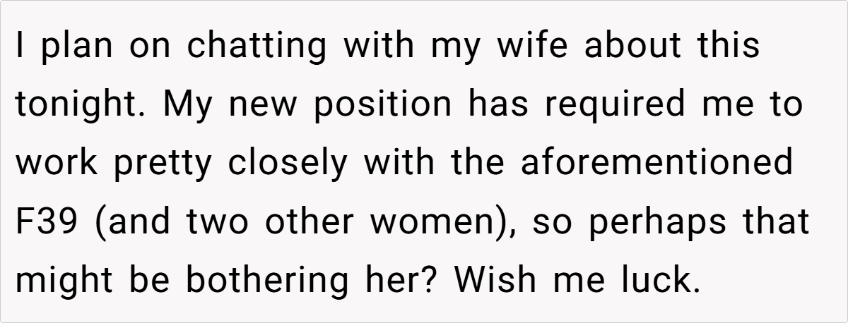 Although this sparked a heated argument at home, with his wife defending herself and even suggesting he was overly sensitive, he now wonders if his reaction was justified or if he’s simply too insecure about how others perceive his relationship.