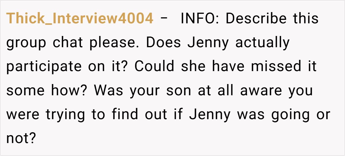 From an advisory perspective, establishing clear, mutual expectations beforehand can prevent such misunderstandings. It’s helpful to ensure everyone understands not only the “what” but also the “why” behind deadlines. In addition to setting rules, offering gentle reminders through multiple channels (calls, texts, or even a follow-up in the group chat) can provide a safety net for miscommunications. Encouraging open feedback and discussing potential hiccups in advance may foster a collaborative rather than confrontational atmosphere, turning a potential family rift into an opportunity for growth.