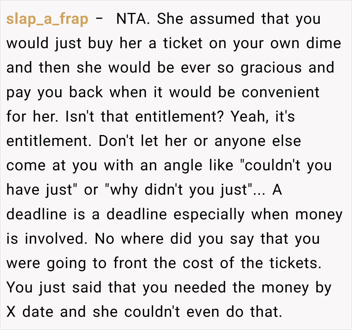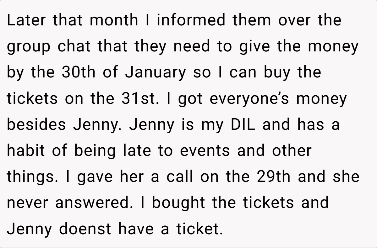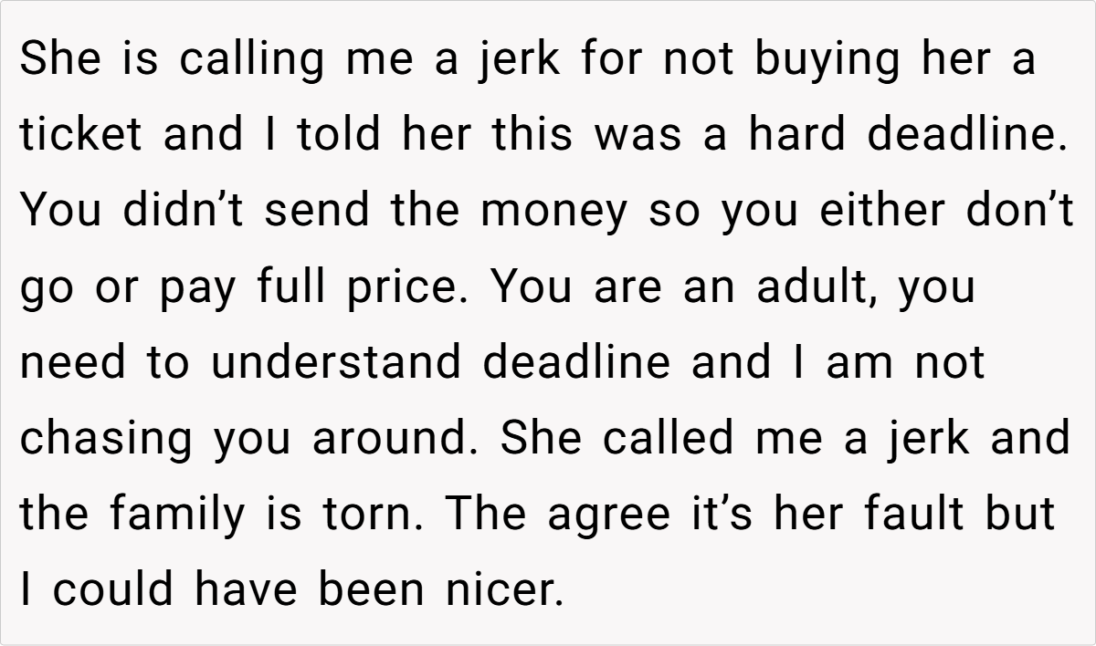 ‘AITA for saying this was a hard deadline and you didn’t send the money so can pay full price or not go at all?’