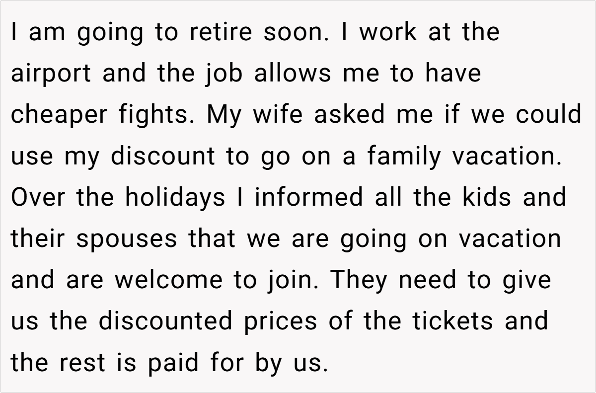 Imagine planning a long-awaited family vacation with all the excitement of a last-minute getaway, only to have it derailed by a simple missed deadline. In this case, our protagonist—a soon-to-be retiree with a discount perk from his airport job—decided that a hard deadline was the only way to ensure everyone paid their share for discounted tickets. The stage is set with anticipation, responsibility, and a dash of familial tension as the holiday spirit meets strict scheduling.