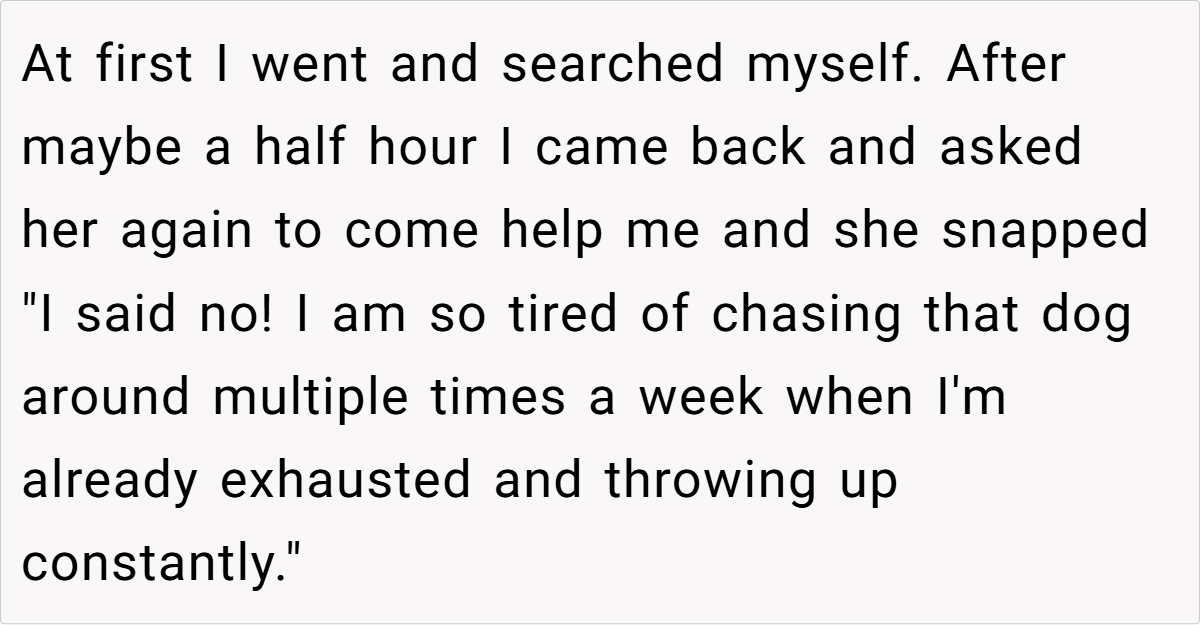 ‘AITA for screaming at my pregnant fiance for not helping me find my dog, who had run off?’