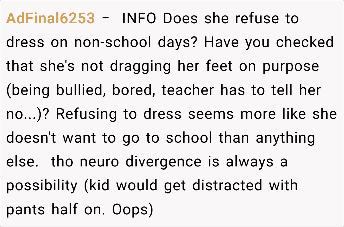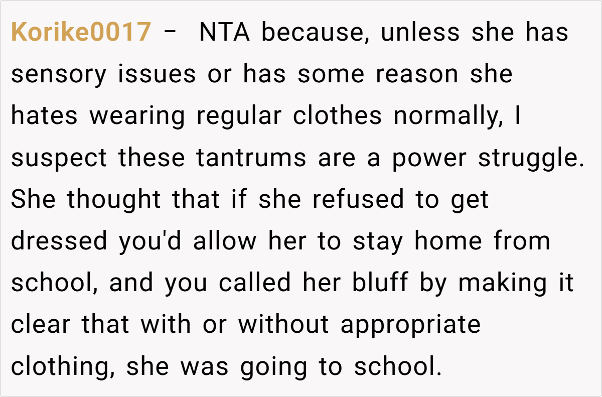 The Reddit community offered a wide range of perspectives on this parenting dilemma. Many redditors sympathized with the father’s exhaustion and acknowledged that mornings are often the hardest part of the day. Some users found humor in the absurdity of the situation, joking that a day in pyjamas might even be a fun change of pace.