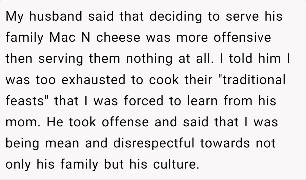 ‘ AITA for serving my husband’s family Mac N Cheese for dinner?’