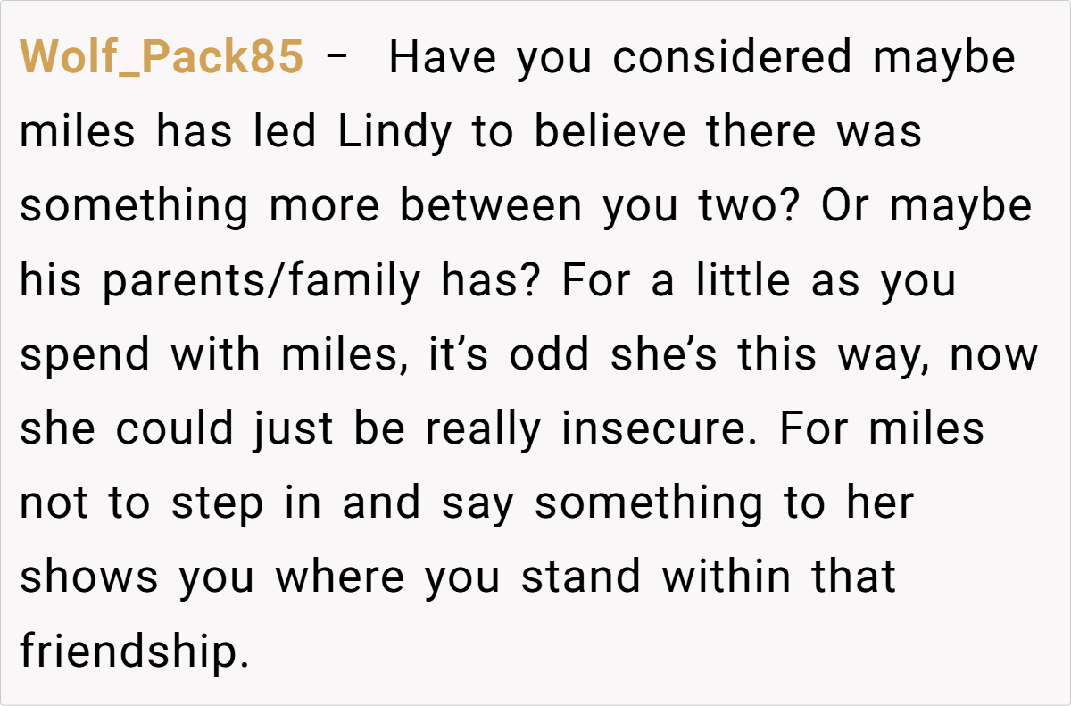 Jealousy, as an emotion, is complex and often reflects deeper insecurities. According to relationship expert Dr. Jenn Mann, “Jealousy is often less about your partner’s actions and more about your own inner battles.” This insight suggests that Lindy’s aggressive behavior may be less about the actual friendship and more about her own fears and insecurities. Her insistence and overbearing supervision seem to stem from a need to validate her role rather than address any real threat.