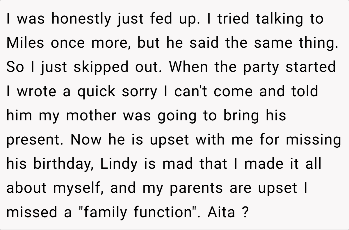 When Lindy’s repeated jabs and even direct messages escalated, the strain reached its peak on Miles’ birthday—a celebration she ultimately skipped. This incident not only hurt Miles but also stirred discontent among their families, leaving everyone to wonder where old bonds end and new boundaries begin.