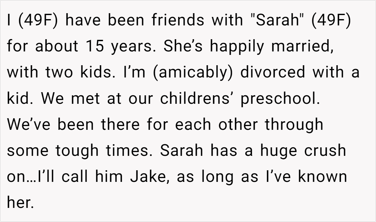 OP, a 49-year-old divorcee, finds herself in hot water after a one-night stand with a musician her friend has long admired. While OP saw it as a harmless encounter, her friend feels hurt and betrayed. Join us as we unpack this story of friendship, boundaries, and the complexities of navigating attraction and loyalty, all while trying to figure out if OP is truly the a-hole.