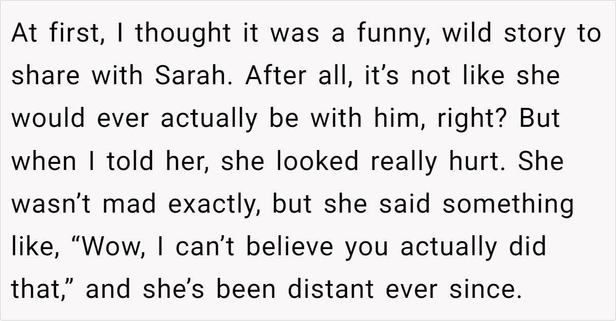 Ever had a “hall pass” – that one celebrity you’d hypothetically be allowed to, well, get with if the stars aligned and your partner gave the okay? In this Reddit story, a casual fling with a friend’s “hall pass” celebrity crush turns into a friendship-testing drama.