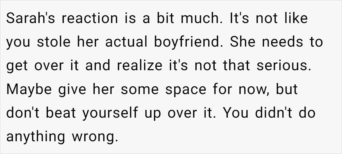 This situation highlights the nuances of friendship and the challenges of balancing personal desires with respect for a friend’s feelings. Dr. Andrea Bonior, a clinical psychologist and author specializing in friendship and relationships, notes that “Friendships thrive on trust, mutual respect, and a shared understanding of boundaries. When those boundaries are crossed, even unintentionally, it can strain the relationship and create hurt feelings.” (Source: The Friendship Fix: The Complete Guide to Choosing, Losing, and Keeping Up with Your Friends)
