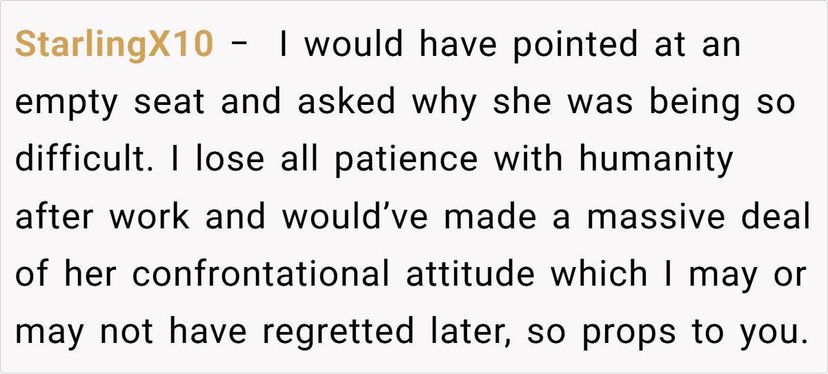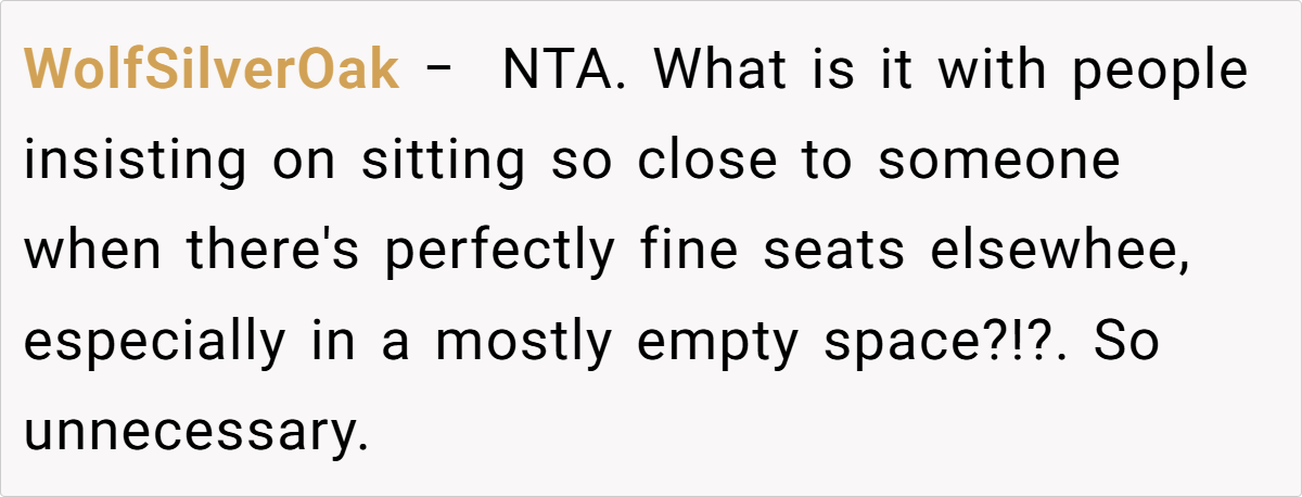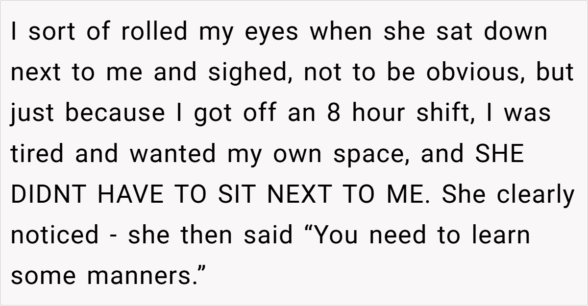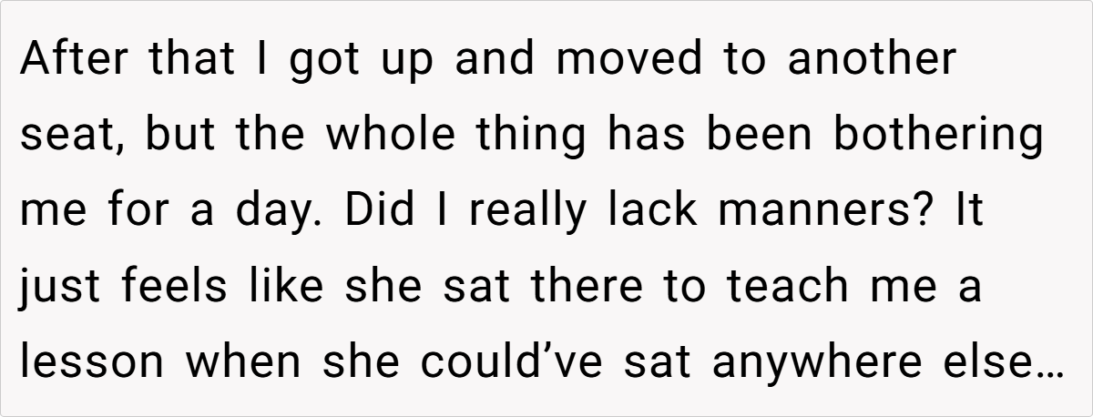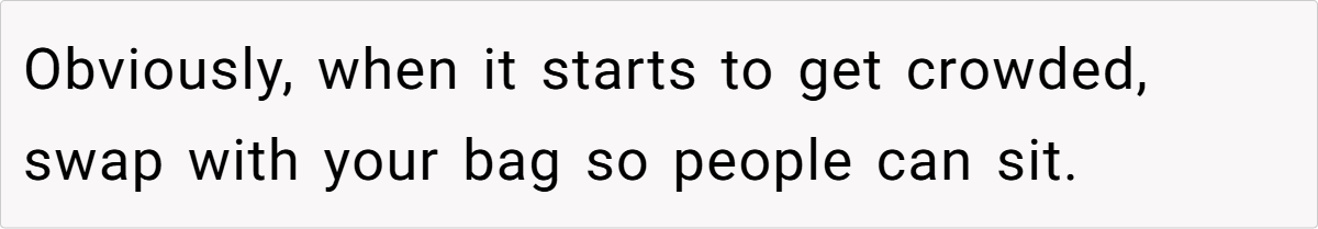 This story highlights a subtle conflict over personal space in a public setting—a situation that many commuters might relate to after a long, exhausting day. The incident isn’t just about a bag on a seat; it’s a reflection of differing expectations about courtesy and comfort in shared spaces. When individual preferences meet collective norms, misunderstandings can quickly arise, especially in environments where silence is the default.