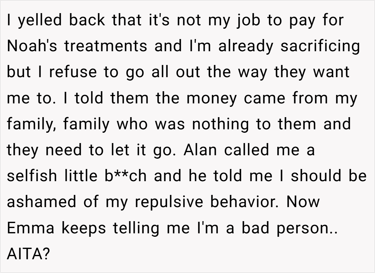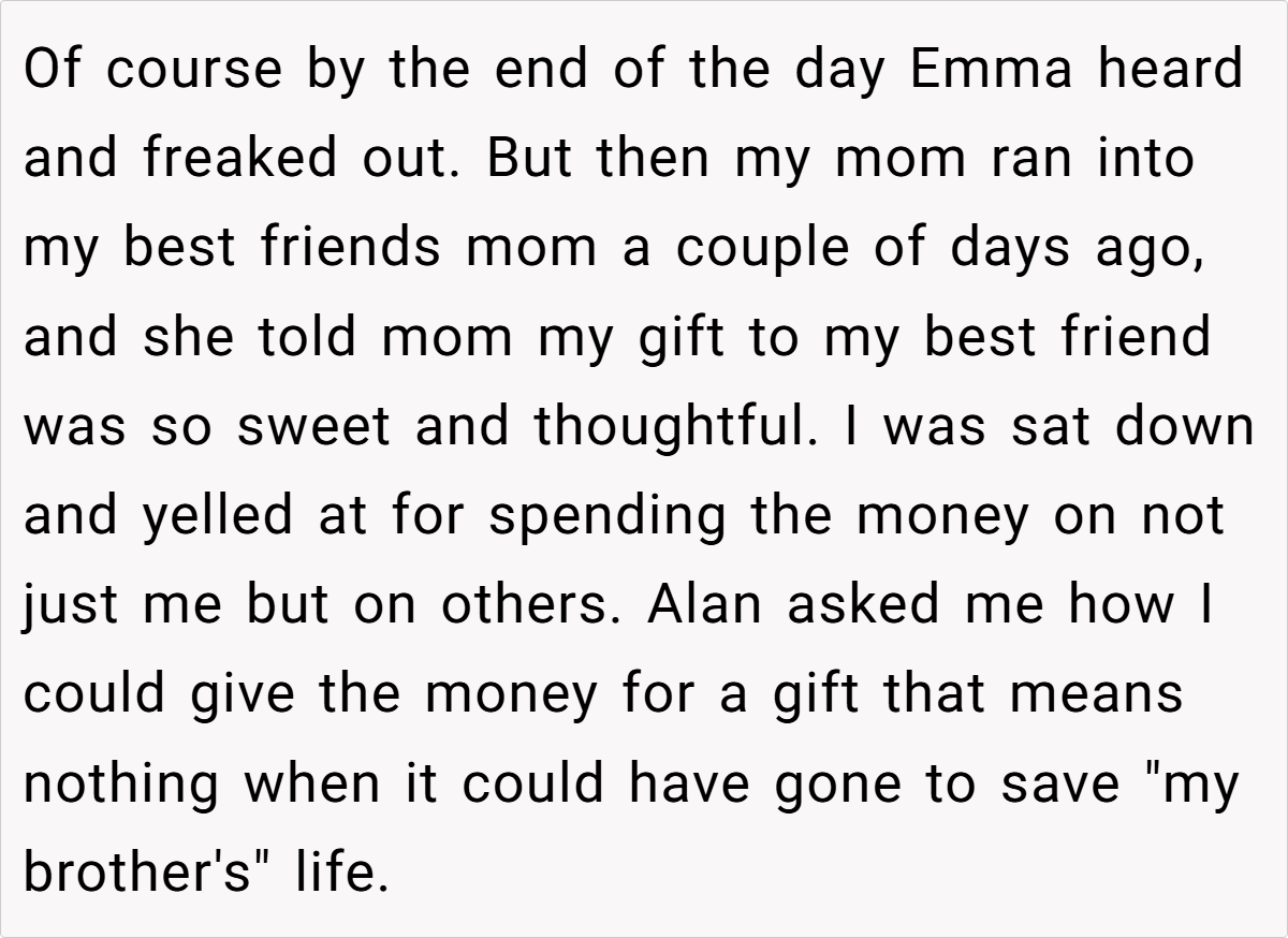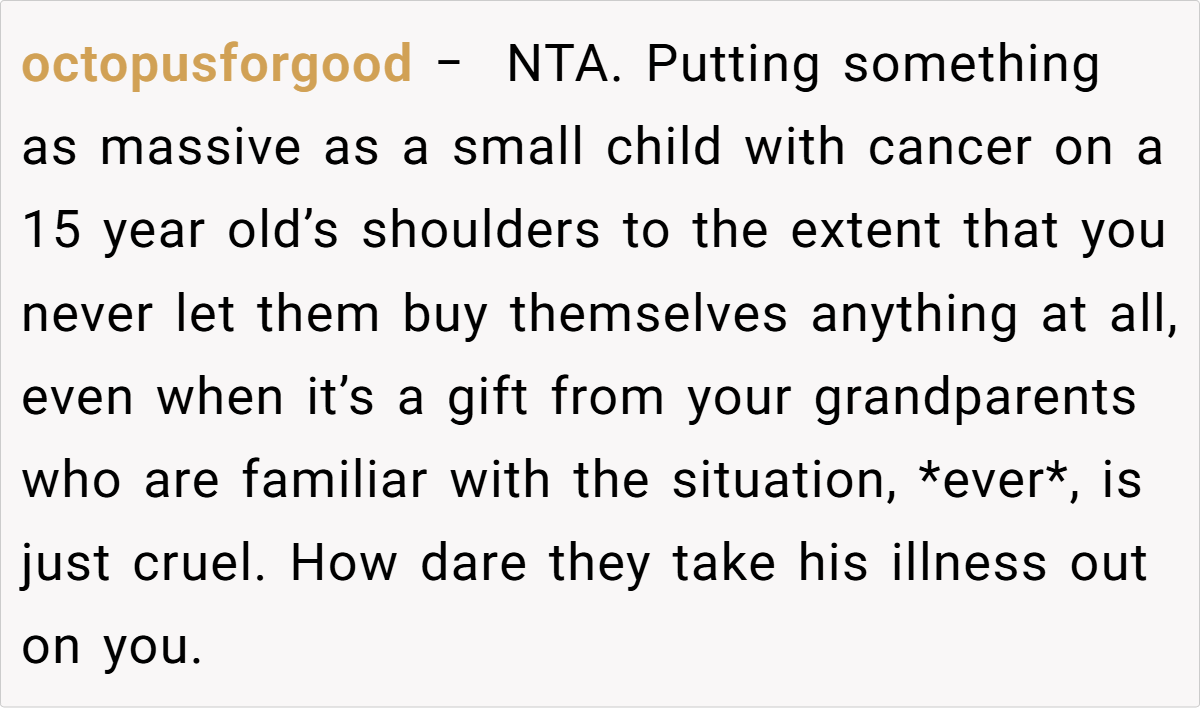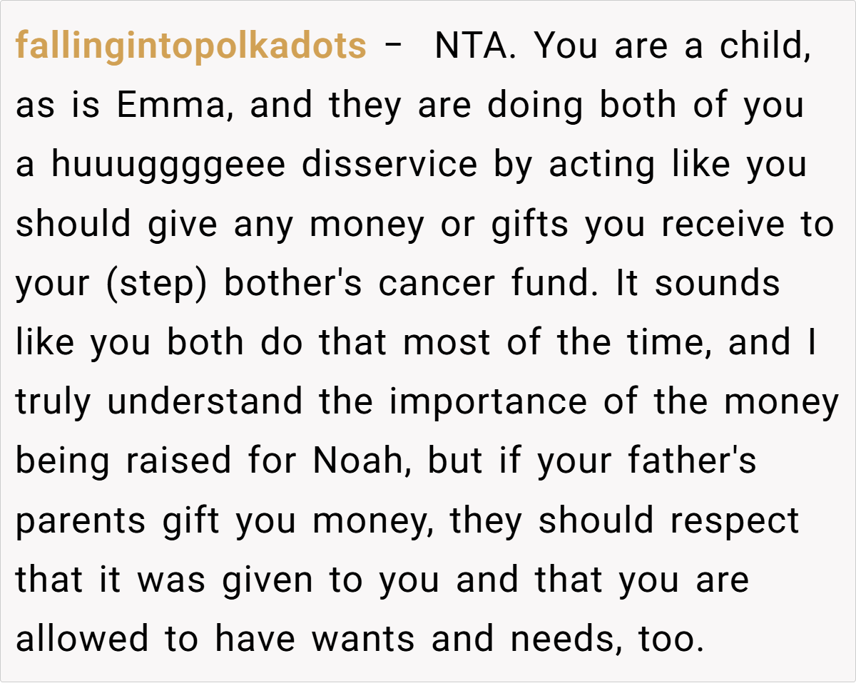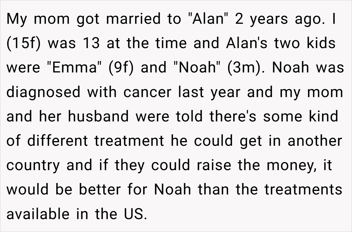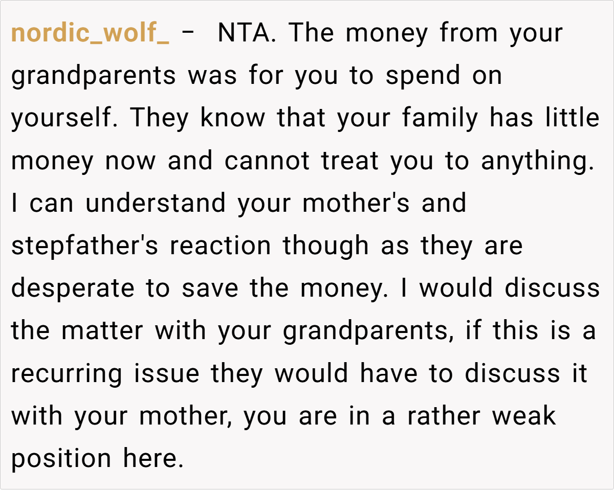 ‘AITA for spending money my grandparents gave me instead of saving it toward my stepbrother’s treatment fund?’
