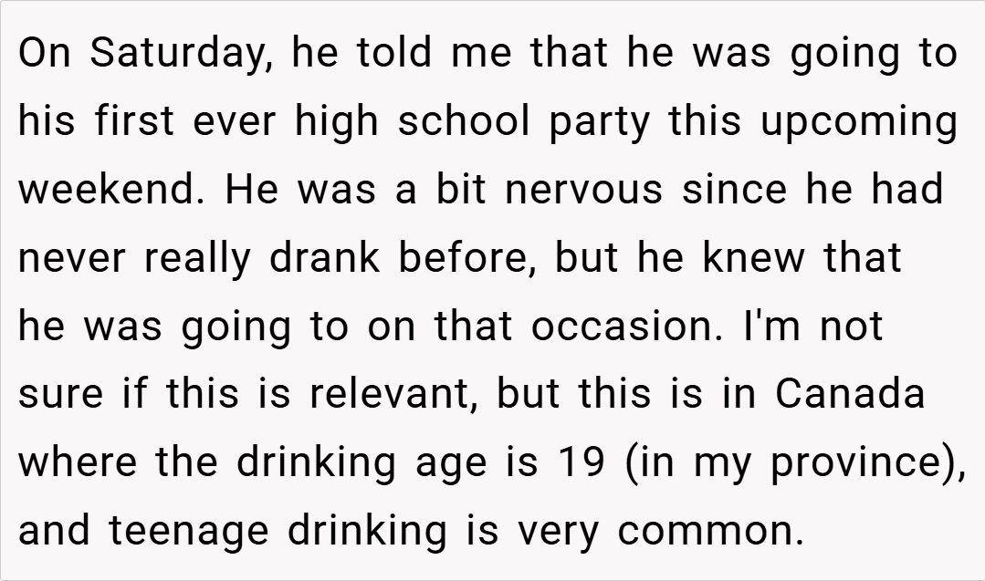 Parenting decisions can be fraught with complexity—especially when they involve exposing minors to alcohol. In one Reddit post that has sparked heated debate, a 46‑year‑old father shares how he decided to give his 17‑year‑old son a “test run” with beer before the boy attended his first high school party. Residing in Canada (where the legal drinking age in his province is 19),