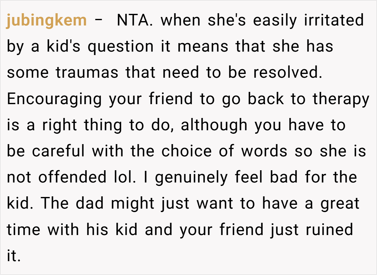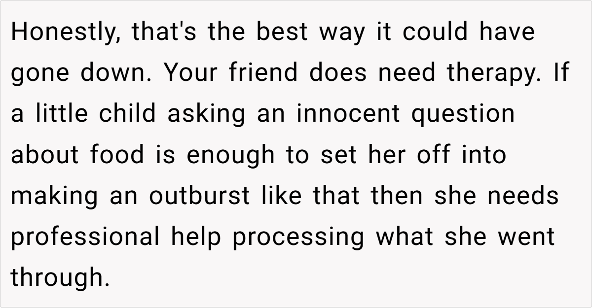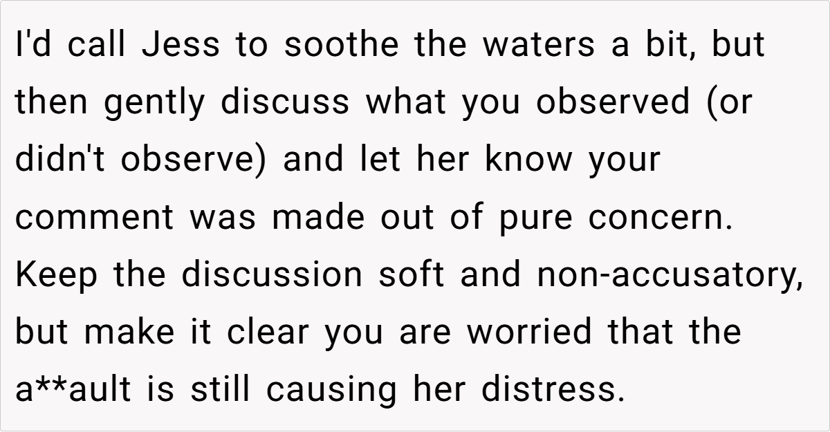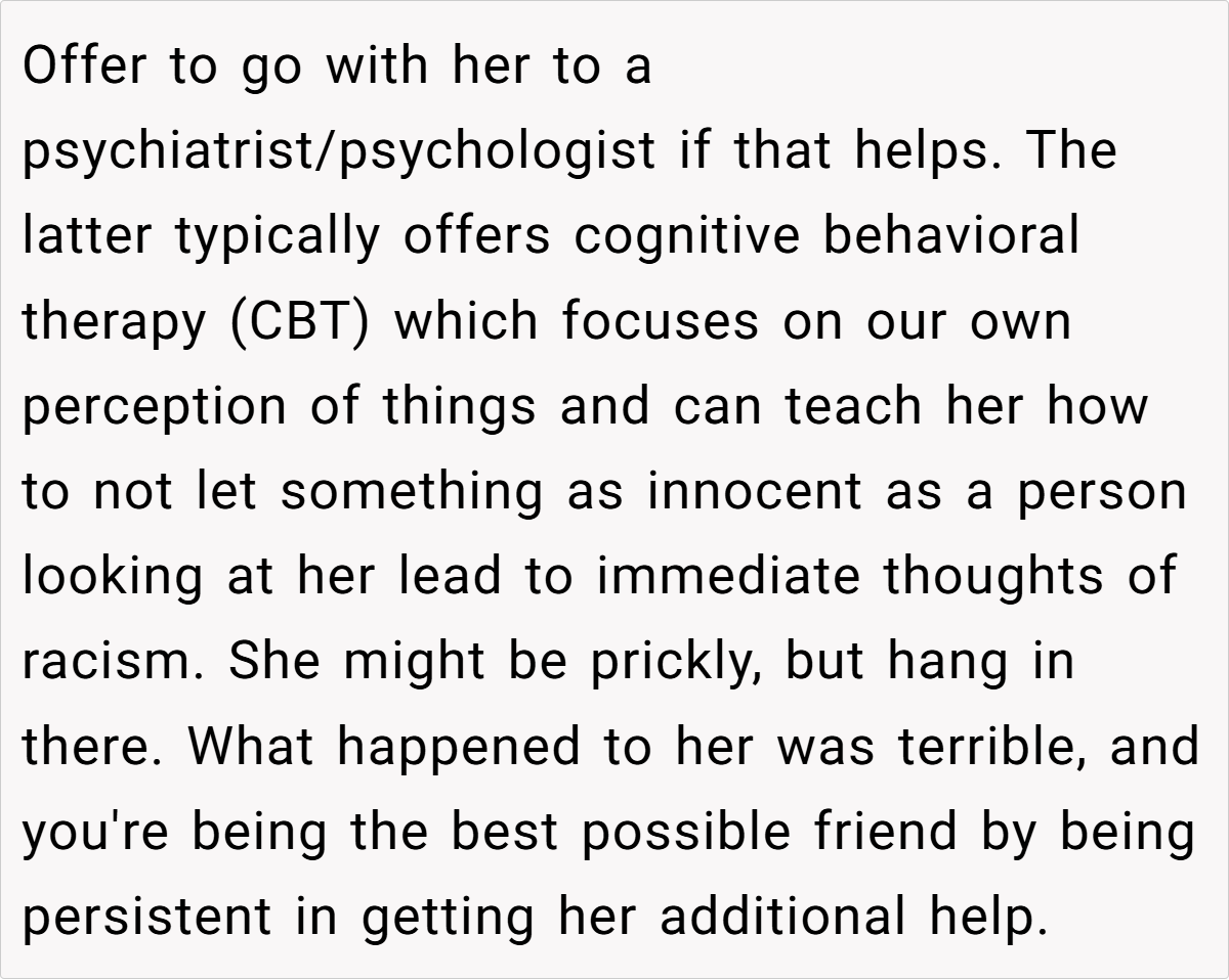 The reaction also raises questions about the delicate balance between offering support and overstepping personal boundaries. Suggesting that someone return to therapy is a caring act, yet timing and phrasing are crucial. Friends may intend to help by pointing out that professional guidance could ease the burden of lingering trauma.