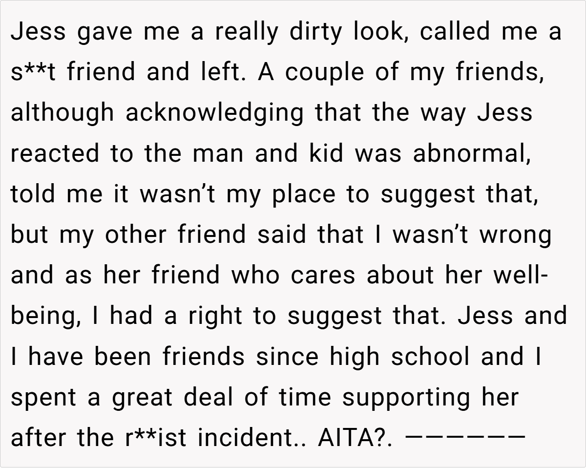 In that moment, the line between harmless curiosity and painful memory blurred. While I and some friends saw it as an innocent exchange, Jess perceived it as a deliberate slight, reminding her of past injustices. Her reaction, though extreme, was rooted in deep emotional scars. This incident has since sparked a complex conversation about how personal trauma can shape our responses, even in seemingly benign situations.
