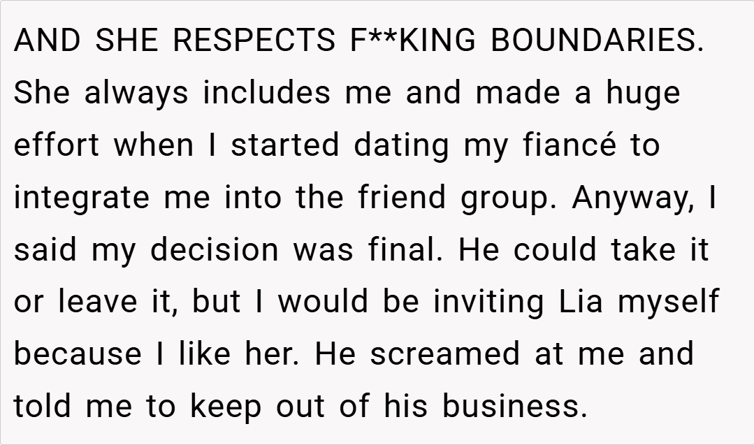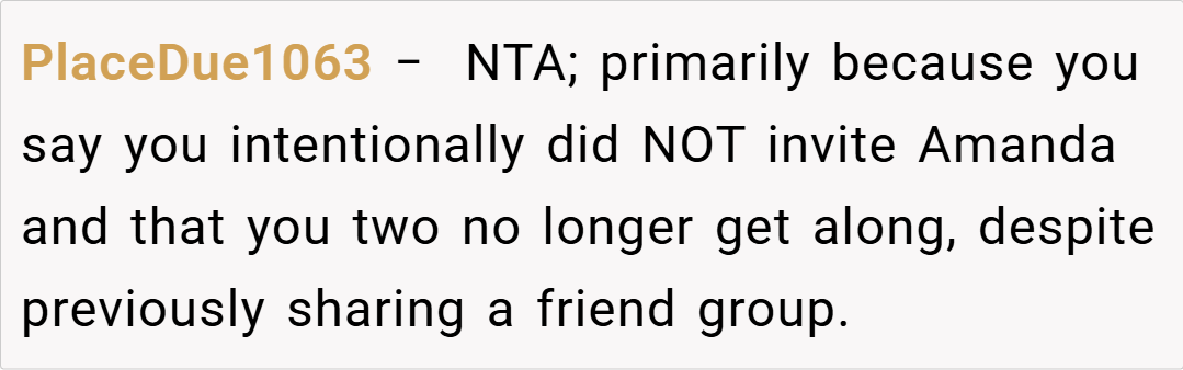 Dr. Gottman further explains that “asserting one’s boundaries, especially during a major life event, is critical to ensuring that the day remains joyful and stress-free for the hosts.” By removing Amanda from the equation, the OP isn’t being controlling or biased; she is simply adhering to her own standards and protecting the integrity of her celebration.