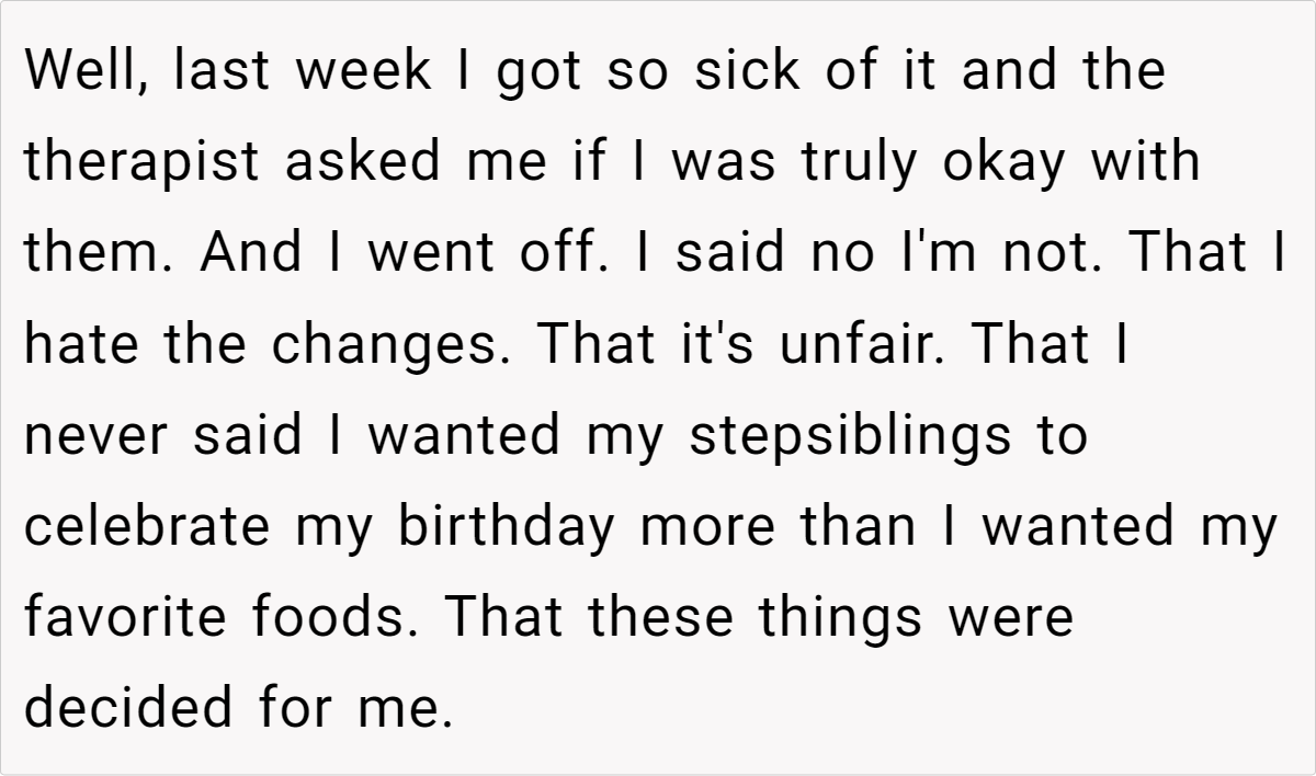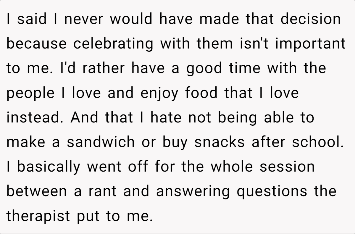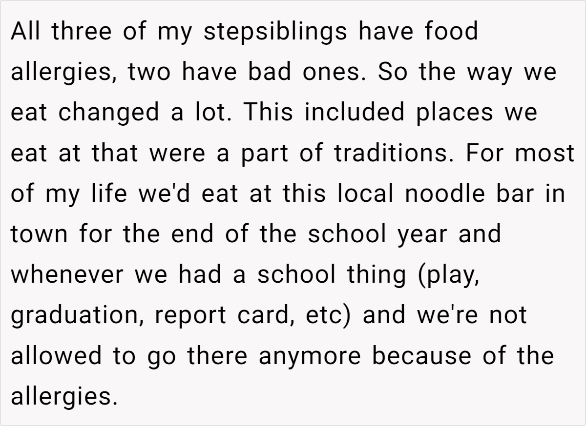 In a world that suddenly felt dictated by others’ needs, this teenager’s outburst was less about disruption and more about reclaiming his voice. His heartfelt rant questioned the fairness of sacrificing his own preferences for the sake of accommodating food allergies and new family traditions—changes that, to him, felt imposed rather than chosen.