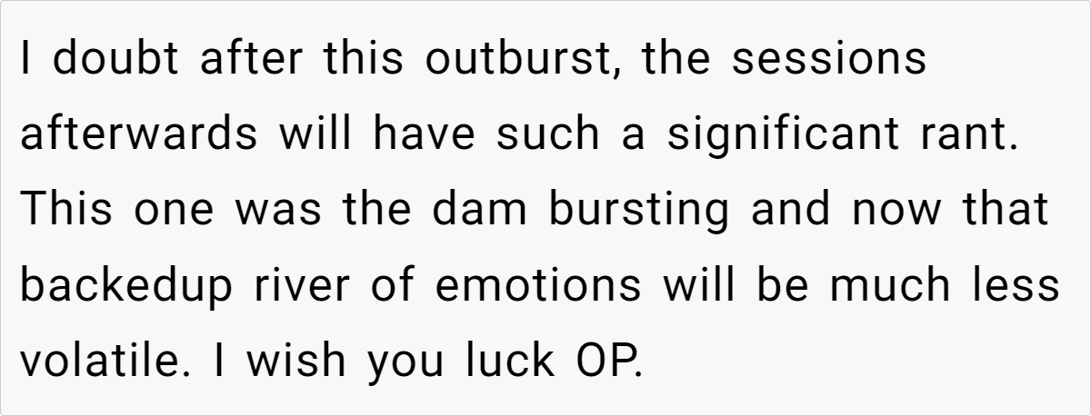 The OP’s rant during the therapy session, while perhaps disruptive, served as a much-needed release of pent-up emotions and frustrations. Experts like Perel emphasize the importance of creating a safe space for open communication and emotional expression within blended families. “Ignoring or dismissing individual experiences can lead to resentment and hinder the integration process,” Perel warns. This highlights the need for the father and stepmother to actively listen to the OP’s concerns and validate his feelings, even if they don’t fully agree with them.