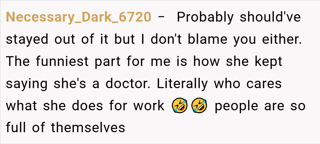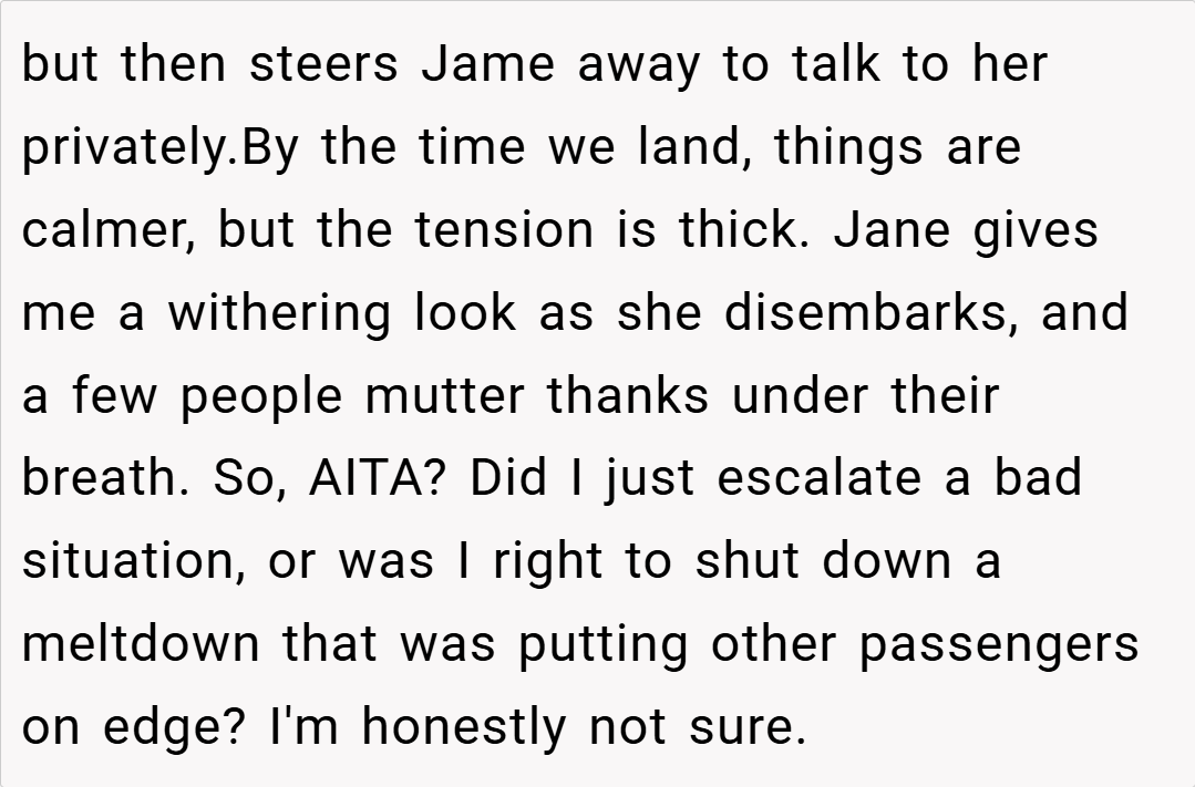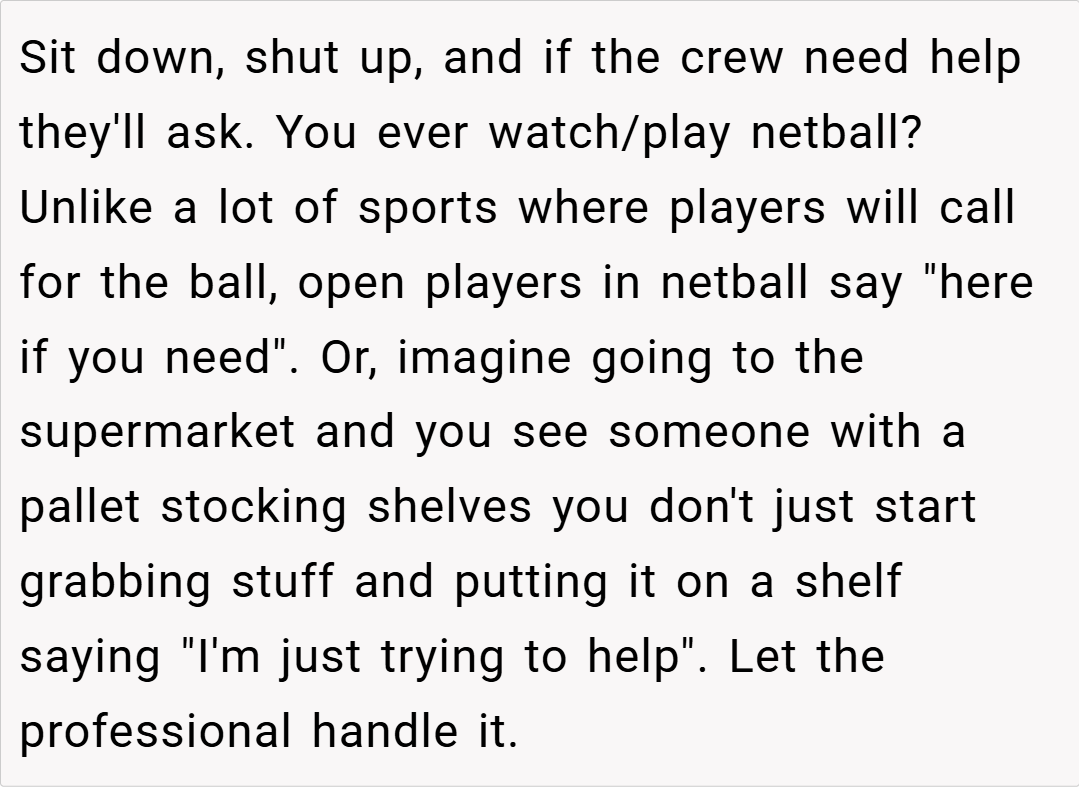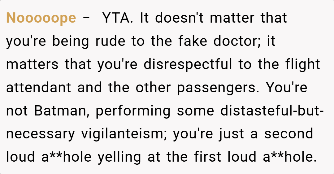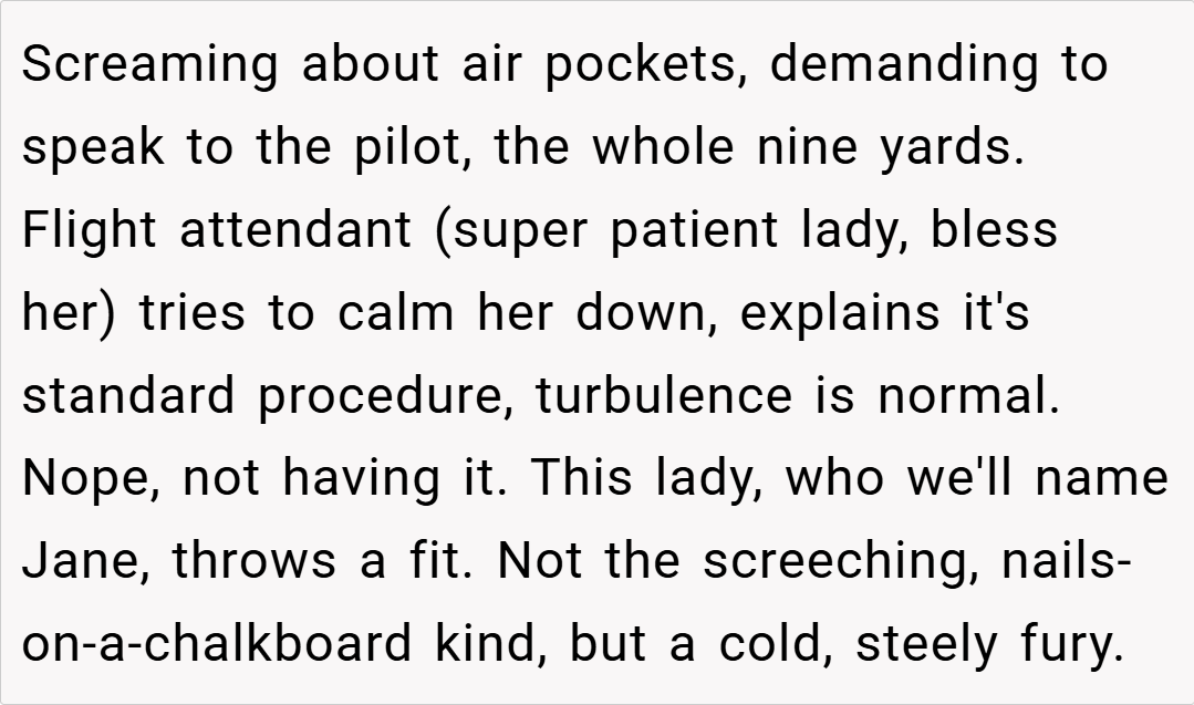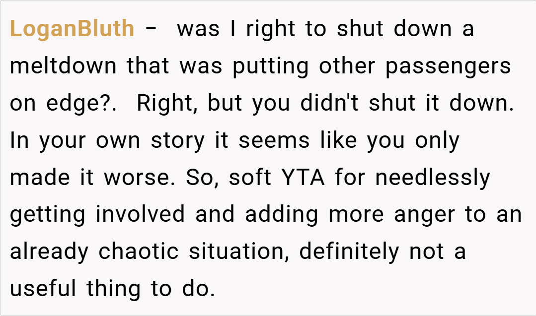 A popular take from a Redditor pointed out that while the urge to intervene is understandable, the flight crew are specially trained for these moments. They noted that stepping in without backing from the professionals only risks worsening the situation. According to this perspective, letting the experts handle the crisis might have been the wiser course—no matter how outrageous the other passenger’s behavior appeared.