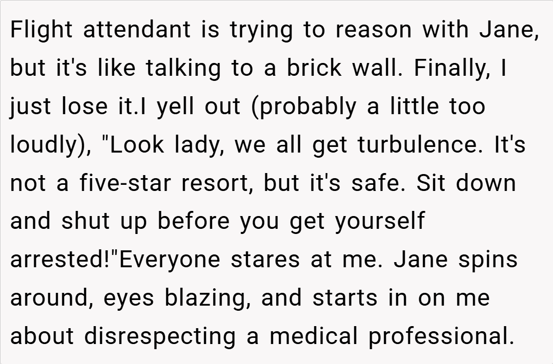 AITA for Telling a Doctor to Shut Up on a Turbulent Flight?