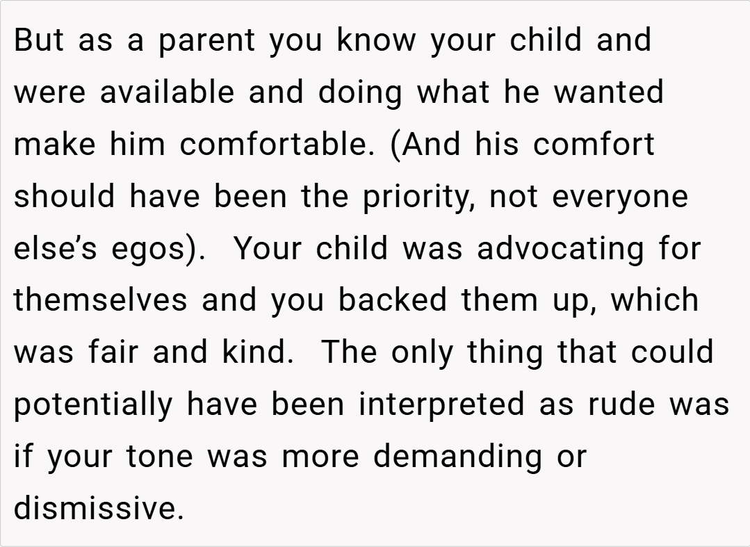Many redditors agree with OP’s approach. “If your child clearly expressed that he felt uncomfortable, then you were right to intervene,” one commenter said.