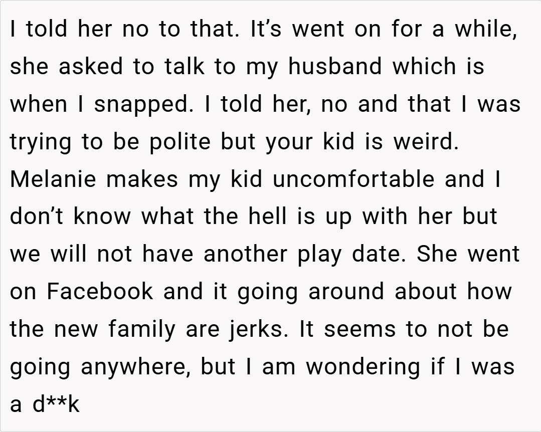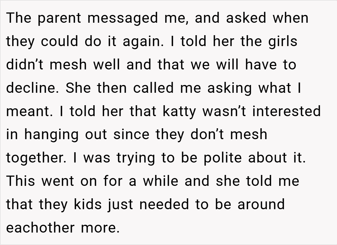 ‘AITA for telling a parent that their kid is weird when she pushed as to why my kid didn’t want to be her friend?’