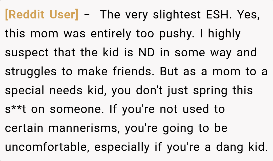 In conclusion, this story shines a light on the difficult choices parents face when addressing their children’s social interactions. While the mom’s blunt remark was born out of a desire to protect her daughter, it has also raised questions about how we label and judge behavior—especially in a digital age.