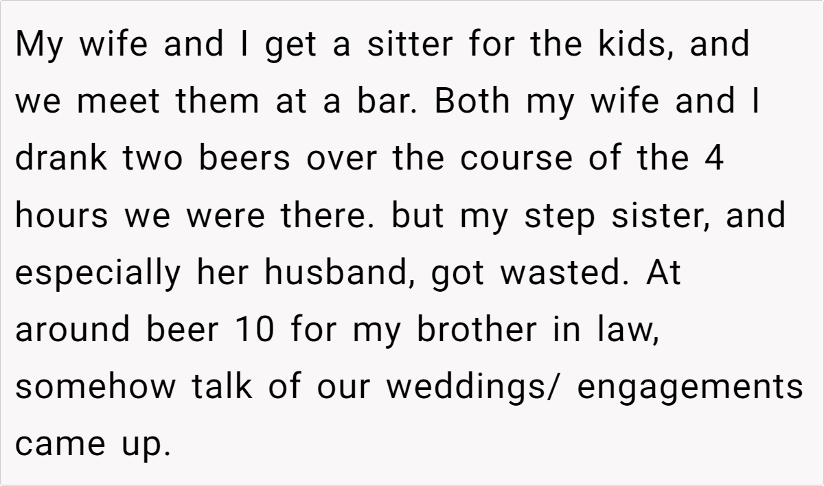 Lastly, the incident highlights how alcohol and sensitive topics can combine to create volatile situations. When personal insecurities surface—like the brother-in-law’s own concerns about his marriage—the result is often misplaced criticism directed at others.
