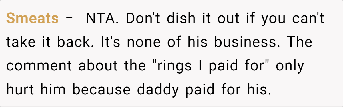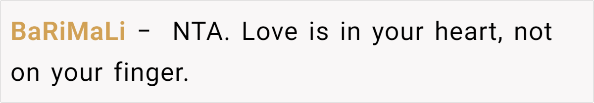 Setting clear boundaries in such moments not only protects one’s loved ones but also serves as a reminder that everyone should mind their own business when it comes to personal choices. After all, if one’s self-worth were truly tied to the ring on one’s finger, perhaps more attention would be paid to nurturing the emotional aspects of a relationship.