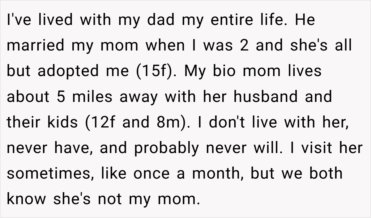 In the early days of blended family life, even a minor oversight can quickly escalate into a significant conflict. For instance, a 15-year-old girl—who has spent her entire life living with her dad and his wife, a woman she regards as her adoptive mom—occasionally visits her biological mother’s home, located just five miles away. However, it has long been understood that she is not fully welcomed there; she has never had her own room or bed, and her presence isn’t truly reflected in the home’s décor.