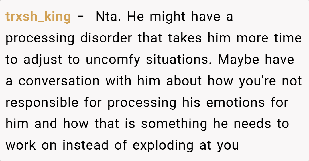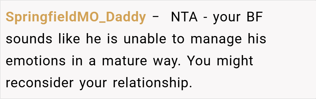 In this case, the OP’s reaction was intended to be helpful and pragmatic, reflecting her professional background, even if her boyfriend’s response was disproportionately defensive.