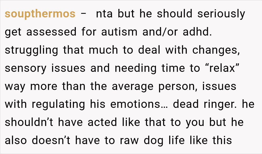 “In relationships where one partner is used to a certain lifestyle or level of comfort, any disruption—even one as seemingly minor as a long-term condition like hemorrhoids—can lead to an emotional outburst. However, it’s also essential for both partners to recognize that practical health advice, particularly when given by someone with medical expertise, should ideally be received with gratitude rather than anger.”