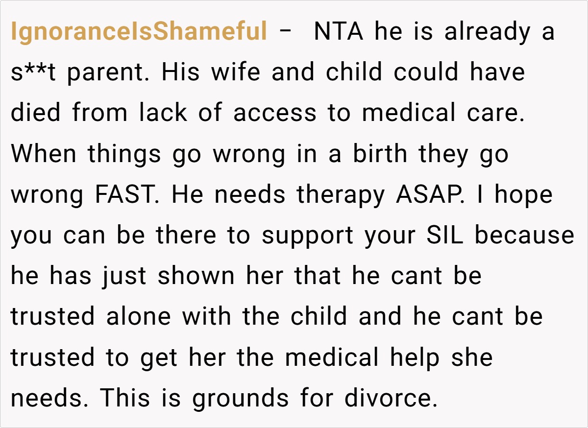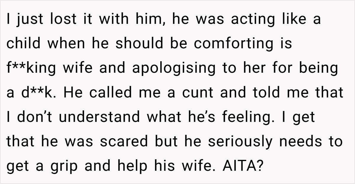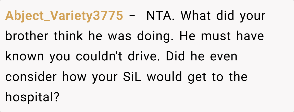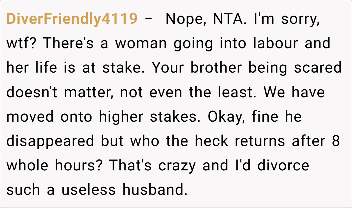 While a few sympathized with his brother’s fear and admitted that everyone panics sometimes, the majority felt that the OP’s harsh words were a necessary wake-up call. Some even praised him for speaking the hard truth about the potential dangers of his brother’s actions.