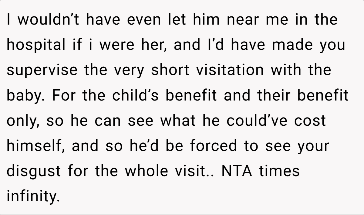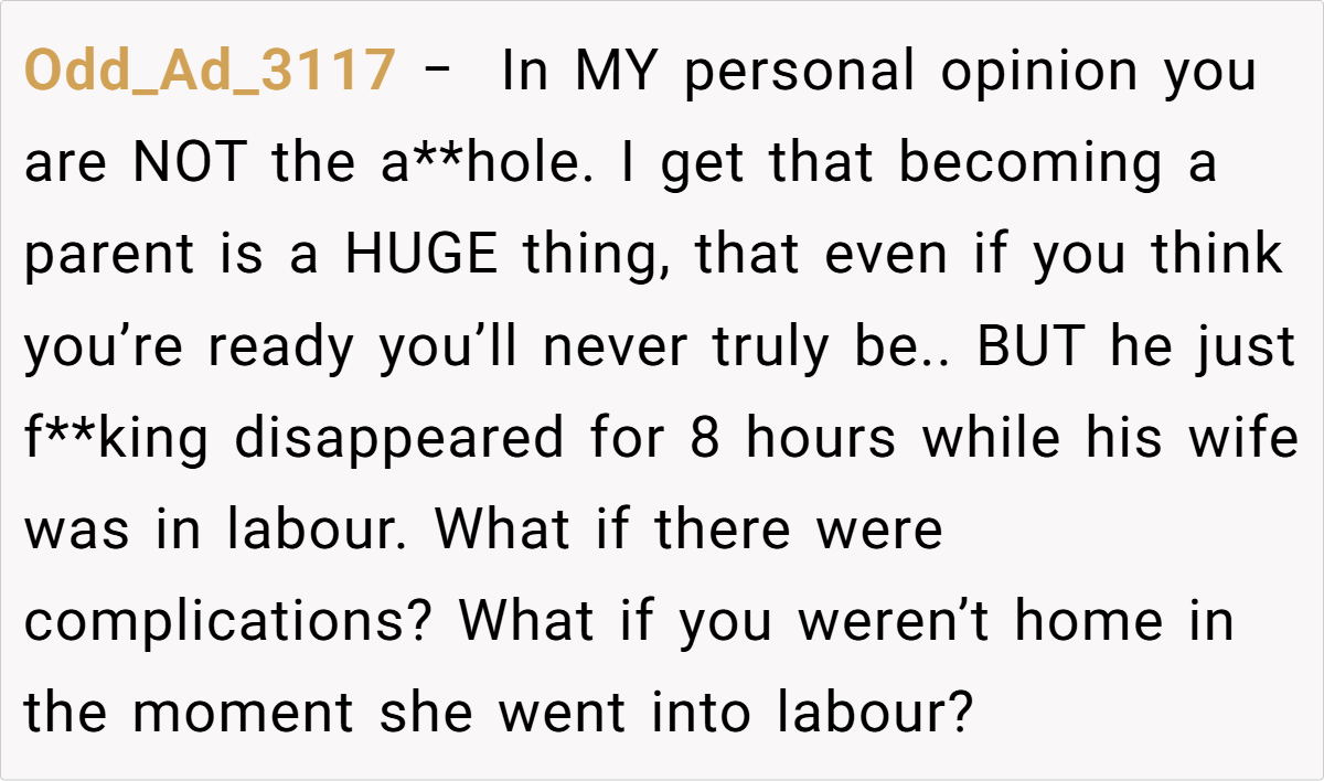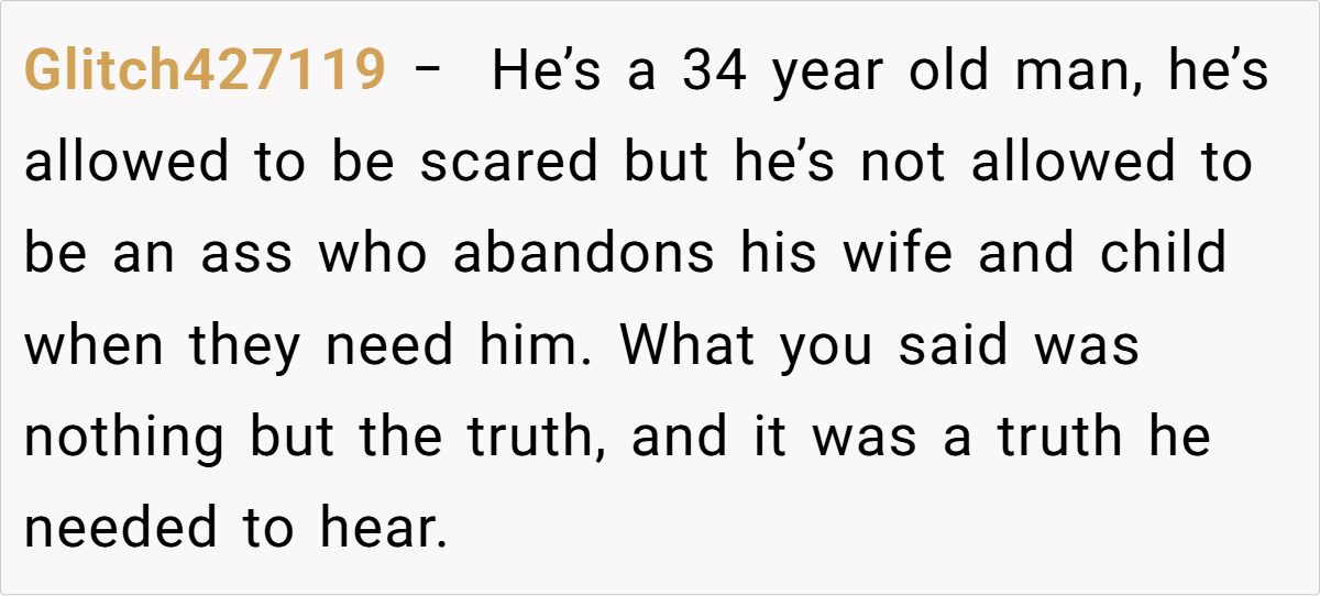 In this situation, the OP’s reaction reflects a necessary, albeit harsh, intervention. Dr. Gottman stresses that accountability is a cornerstone of effective parenting. “A moment of panic, especially in a crisis like childbirth, should serve as a wake-up call. It’s essential for a parent to be present and reliable,” he adds.
