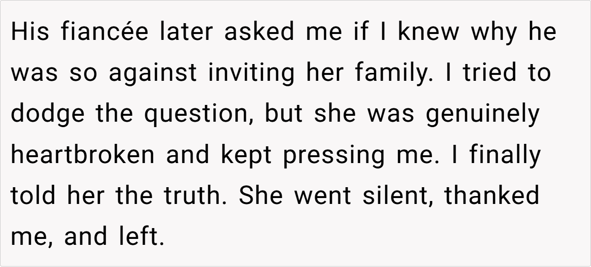 AITA for Telling My Brother’s Fiancée the Real Reason He Won’t Let Her Invite Her Family to Their Wedding?