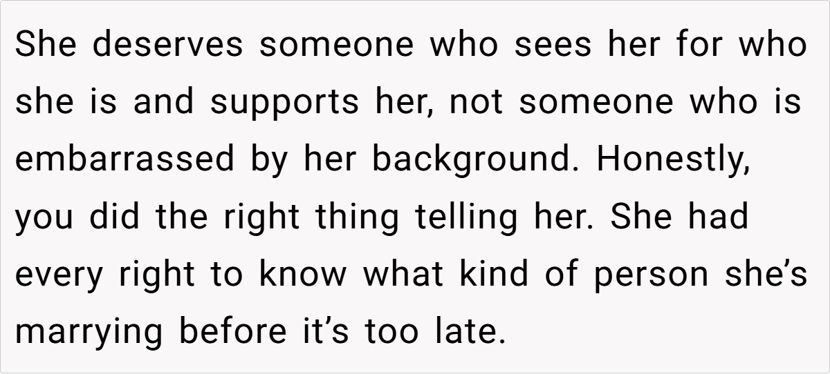- Support Your Loved Ones – OP’s brother demonstrated a lack of respect for his fiancée’s background. True love and partnership should come with unconditional support and appreciation.