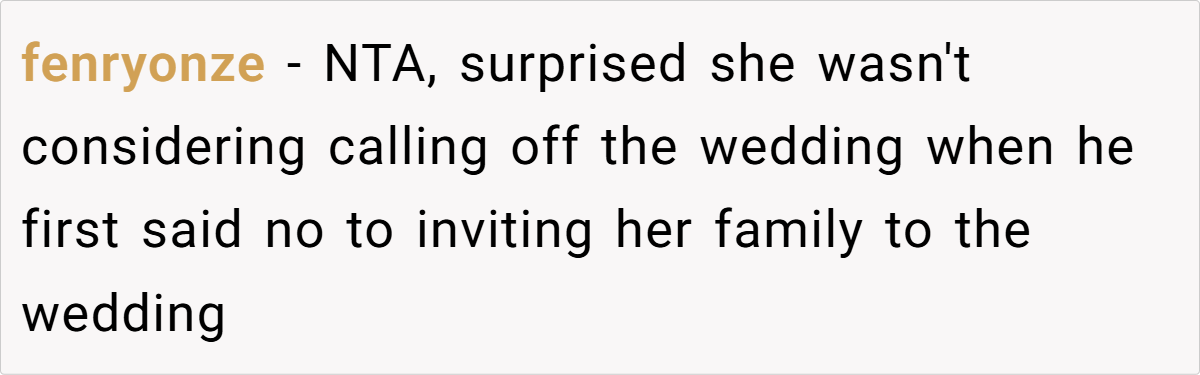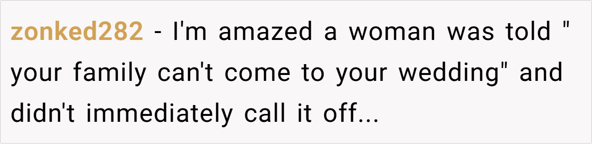 This situation is about more than just a wedding—it’s about fundamental respect and values in a relationship. The fiancée was led to believe that her family was unwelcome for some unspecified reason, only to later find out it was because of classist and offensive views. According to experts, withholding this type of information from a partner can severely damage trust and emotional security.